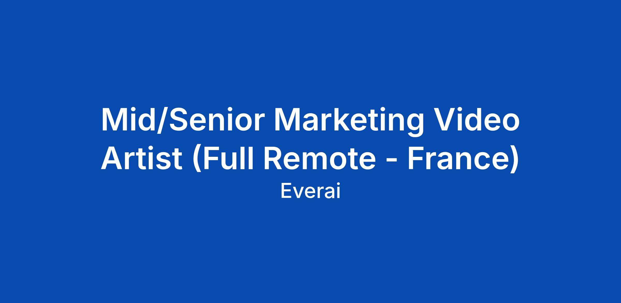 Mid/Senior Marketing Video Artist (Full Remote - France)