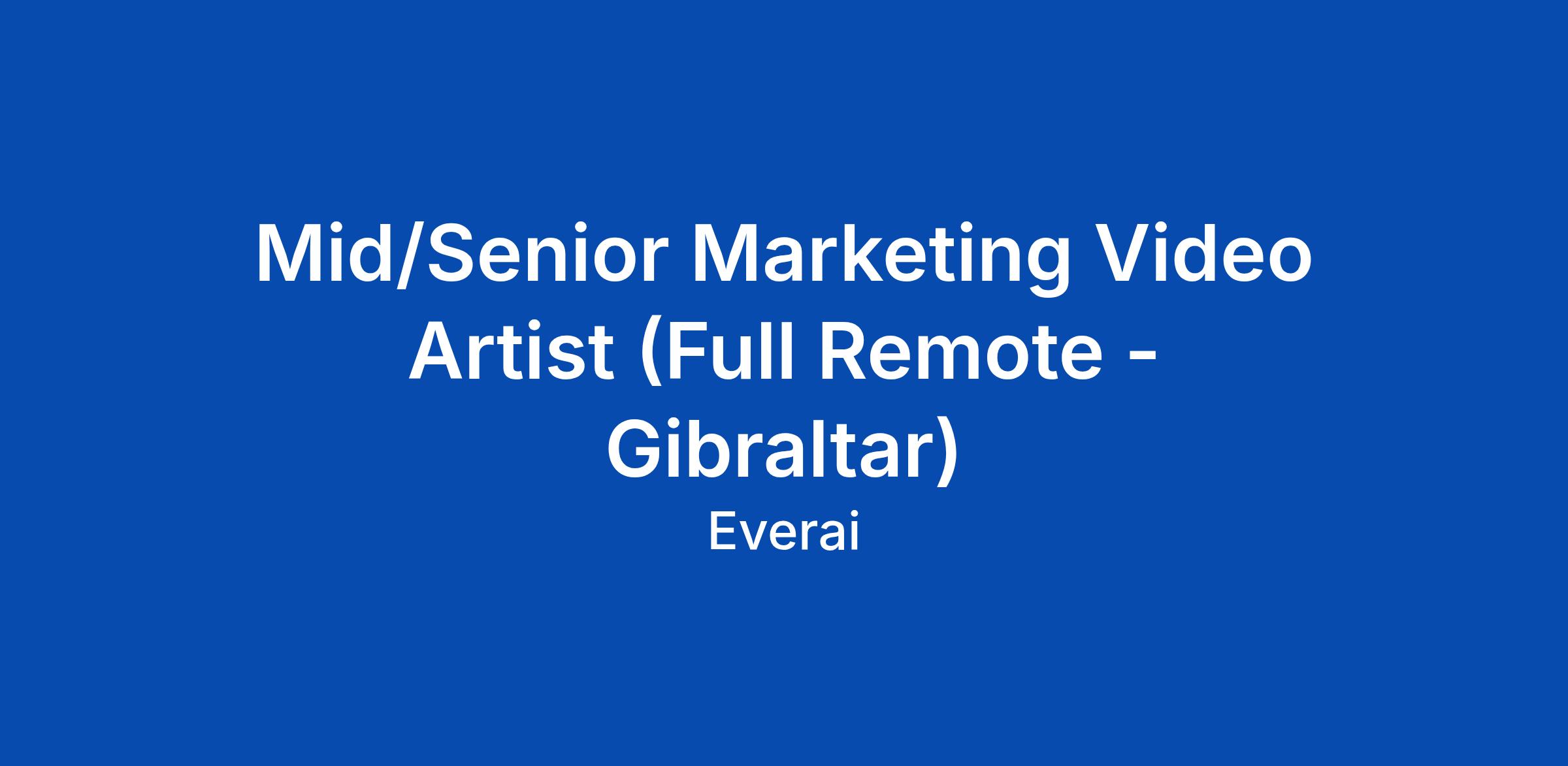 Mid/Senior Marketing Video Artist (Full Remote - Gibraltar)