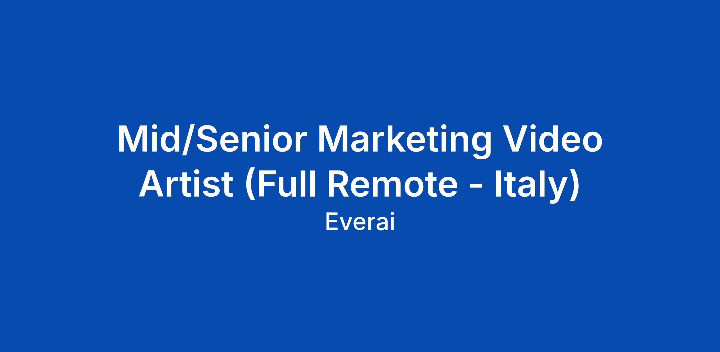 Mid/Senior Marketing Video Artist (Full Remote - Italy)