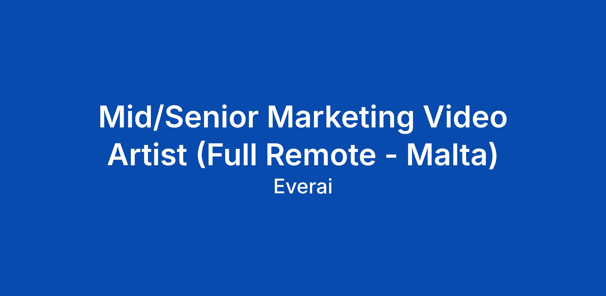 Mid/Senior Marketing Video Artist (Full Remote - Malta)