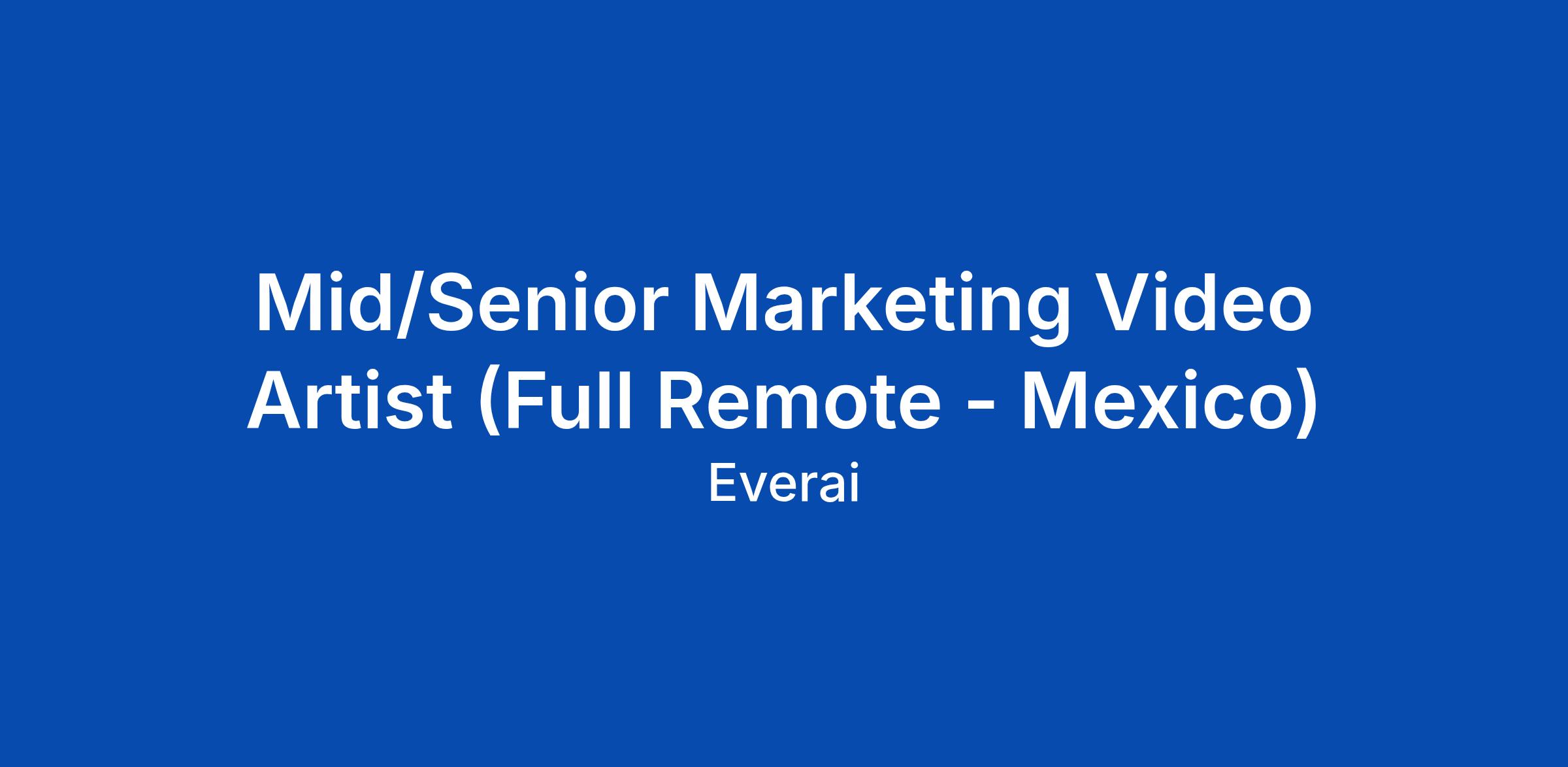 Mid/Senior Marketing Video Artist (Full Remote - Mexico)