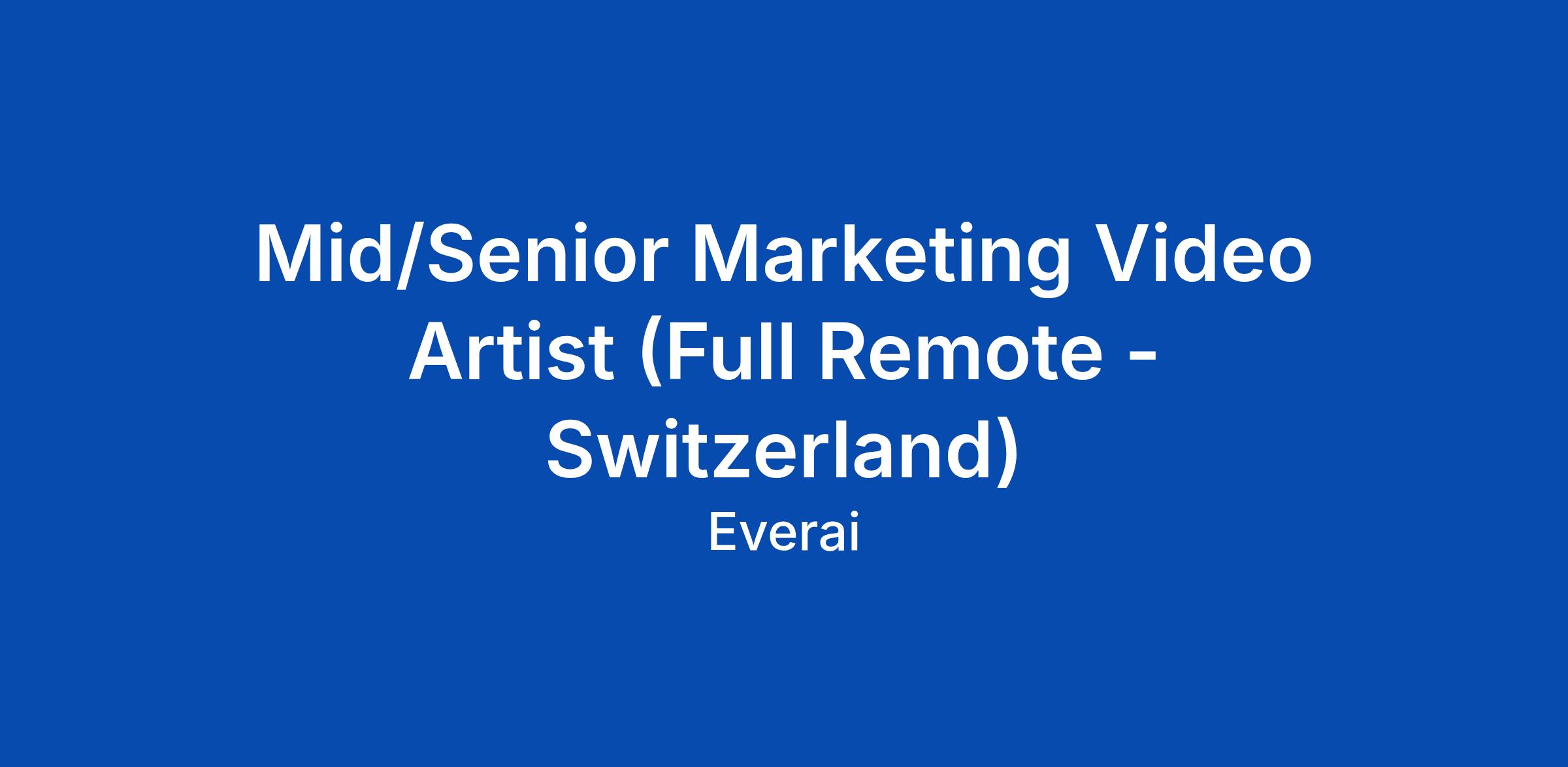 Mid/Senior Marketing Video Artist (Full Remote - Switzerland)