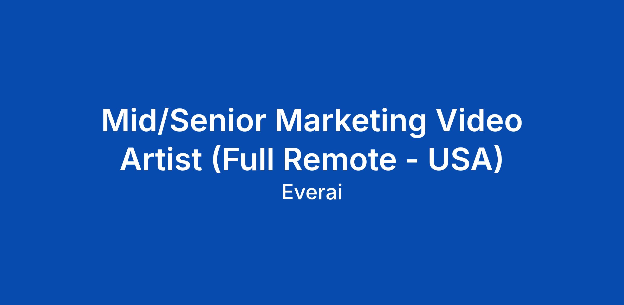 Mid/Senior Marketing Video Artist (Full Remote - USA)