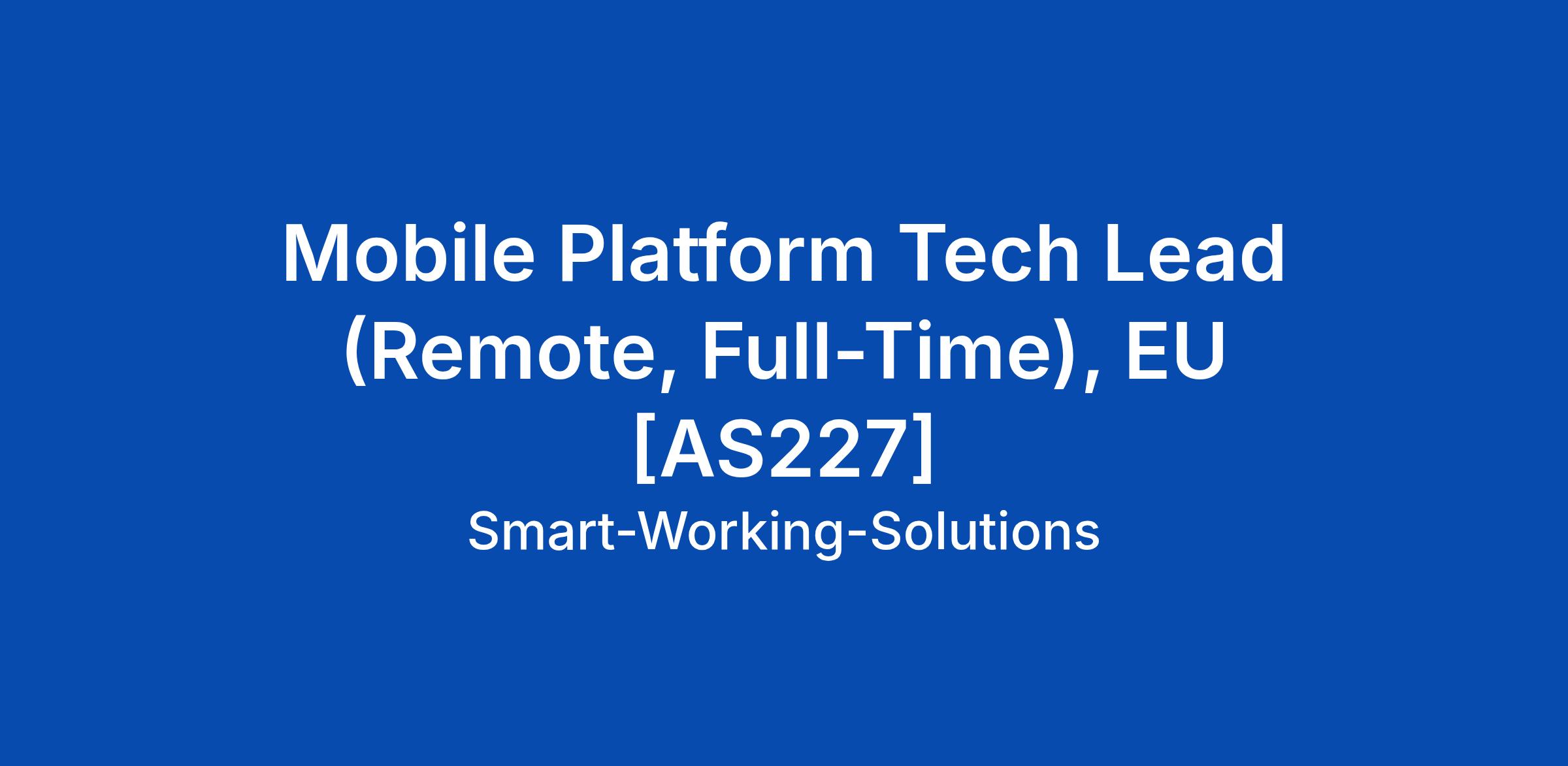 Mobile Platform Tech Lead (Remote, Full-Time), EU [AS227]