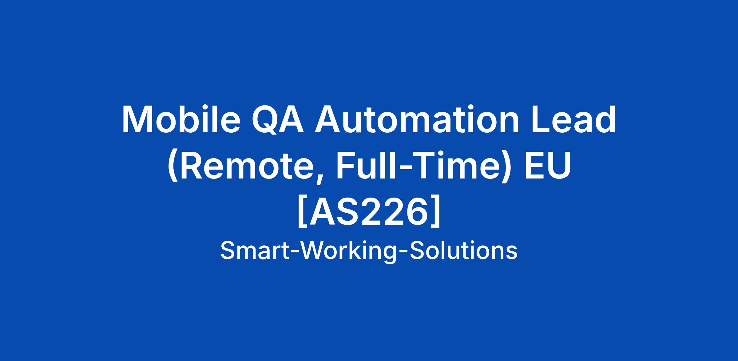 About Smart Working At Smart Working, we believe your job should not only look right on paper but also feel right every day. This isn’t just another remote opportunity - it’s about finding where you truly belong, no matter where you are. From day one, you’re welcomed into a genuine community that values your growth and well-being. Our mission is simple: to break down geographic barriers and connect skilled professionals with outstanding global teams and products for full-time, long-term roles. We help you discover meaningful work with teams that invest in your success, where you’re empowered to grow personally and professionally. Join one of the highest-rated workplaces on Glassdoor and experience what it means to thrive in a truly remote-first world. About the Role We are looking for a QA Automation Lead to drive the evolution of our QA function from a predominantly manual testing model toward a scalable, automation-led, risk-based approach, while maintaining appropriate oversight of existing manual QA processes. This is a hands-on leadership role (approximately 60% hands-on), combining automation strategy, technical execution, and team leadership. You will lead and support a team... Click Apply to read the full job description.