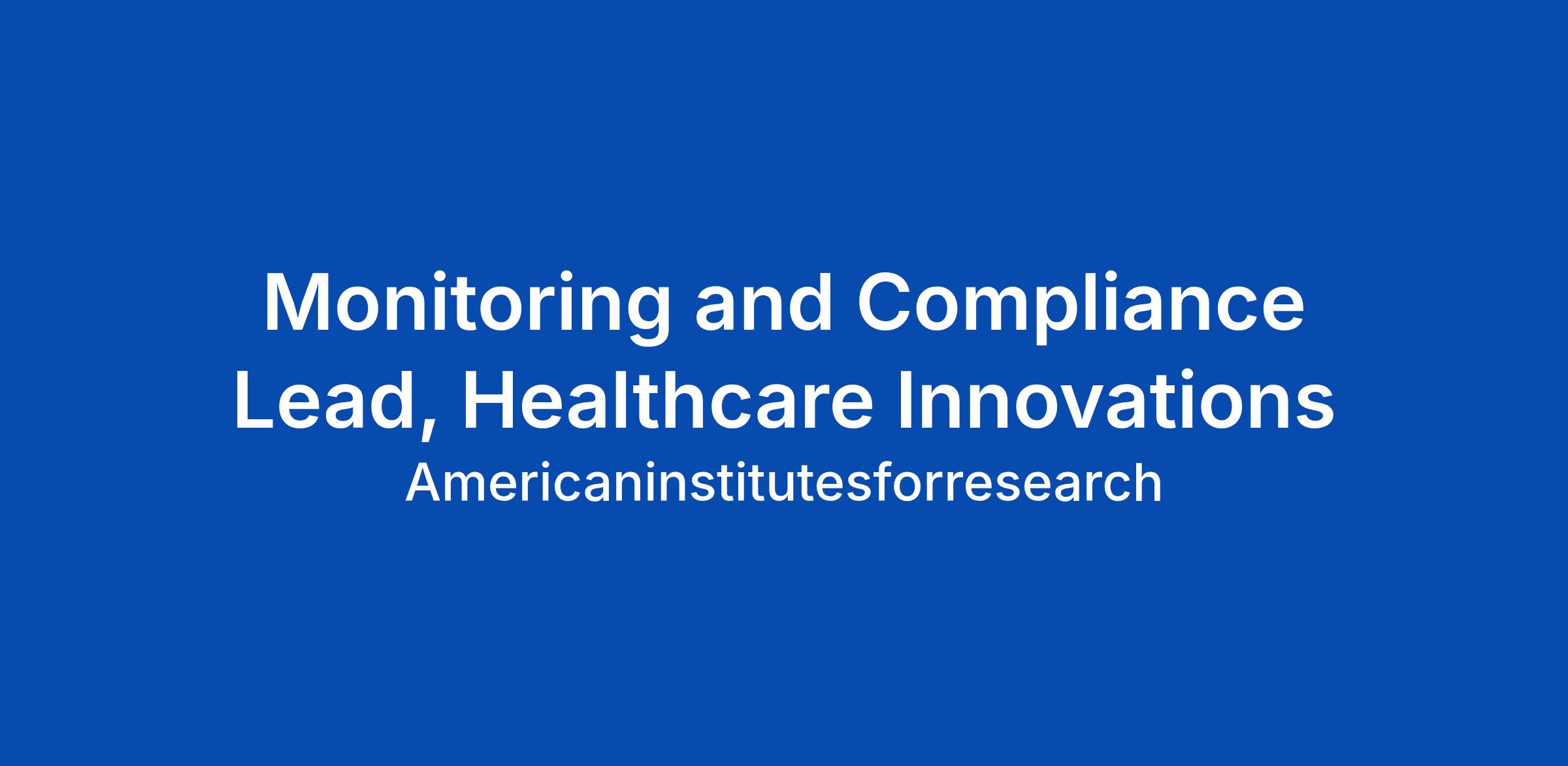 Monitoring and Compliance Lead, Healthcare Innovations