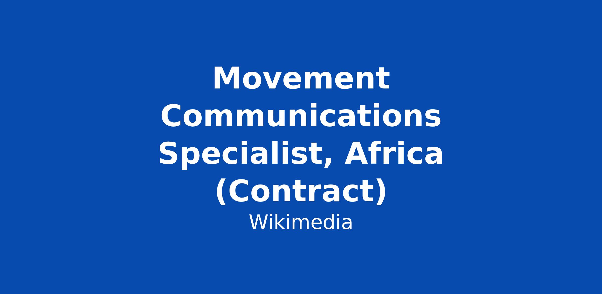 The Wikimedia Foundation is looking for a Movement Communications Specialist, Africa (Contract), the ideal candidate is an experienced communicator, campaigner or community organizer with extensive experience connecting, convening and collaborating across Africa; someone who is passionate about bringing people together around a common cause.