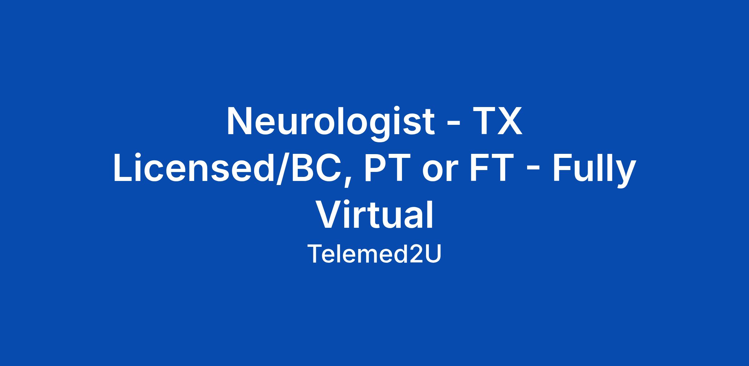 TeleMed2U is seeking a board-certified Neurology provi... Click Apply to read the full job description.