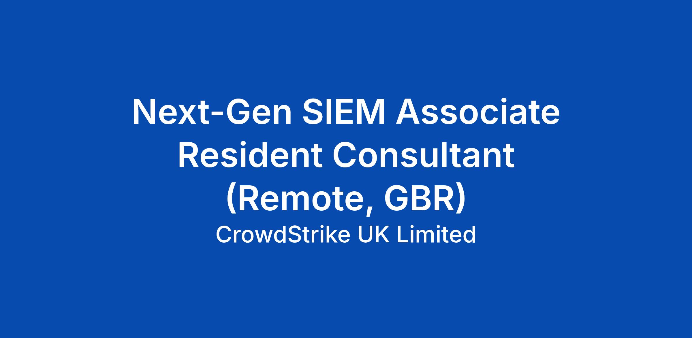 Next-Gen SIEM Associate Resident Consultant (Remote, GBR)