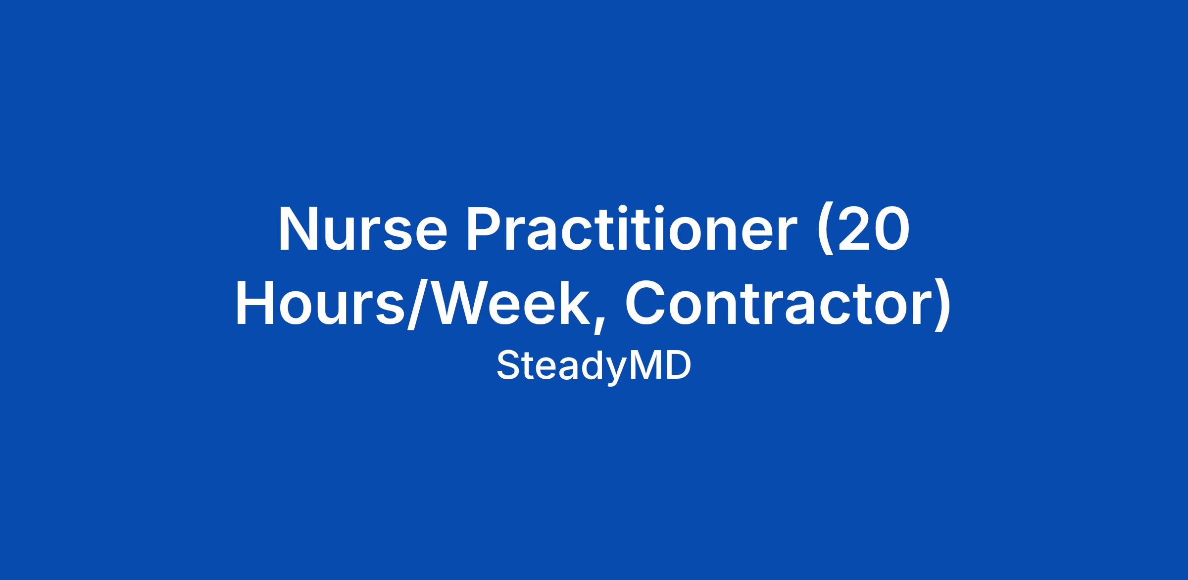 SteadyMD is excited to invite Nurse Practitioners with a minimum of 15 licenses and residency in at least one of the following states: AZ, CA, FL, GA, IL, MA, MI, NY, OH, PA, TX for a new part-time, contractor-based opportunity.