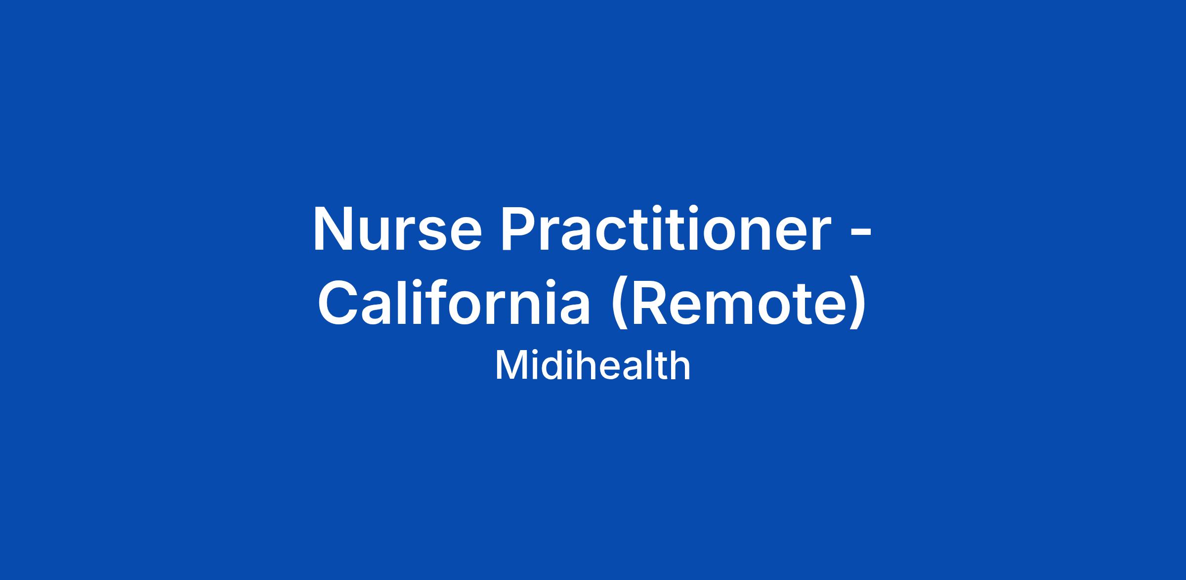 Nurse Practitioner - California (Remote)