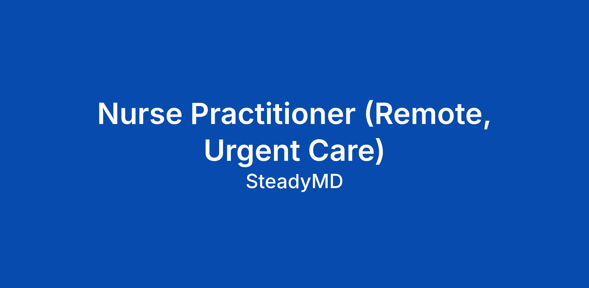 SteadyMD is excited to invite Nurse Practitioners with licenses in at least 5 states (3 of which must be in AZ, WA, PA, MN, CA, TX, or NY) to join our diverse and growing talent pool for a potential role in our urgent care telehealth program.