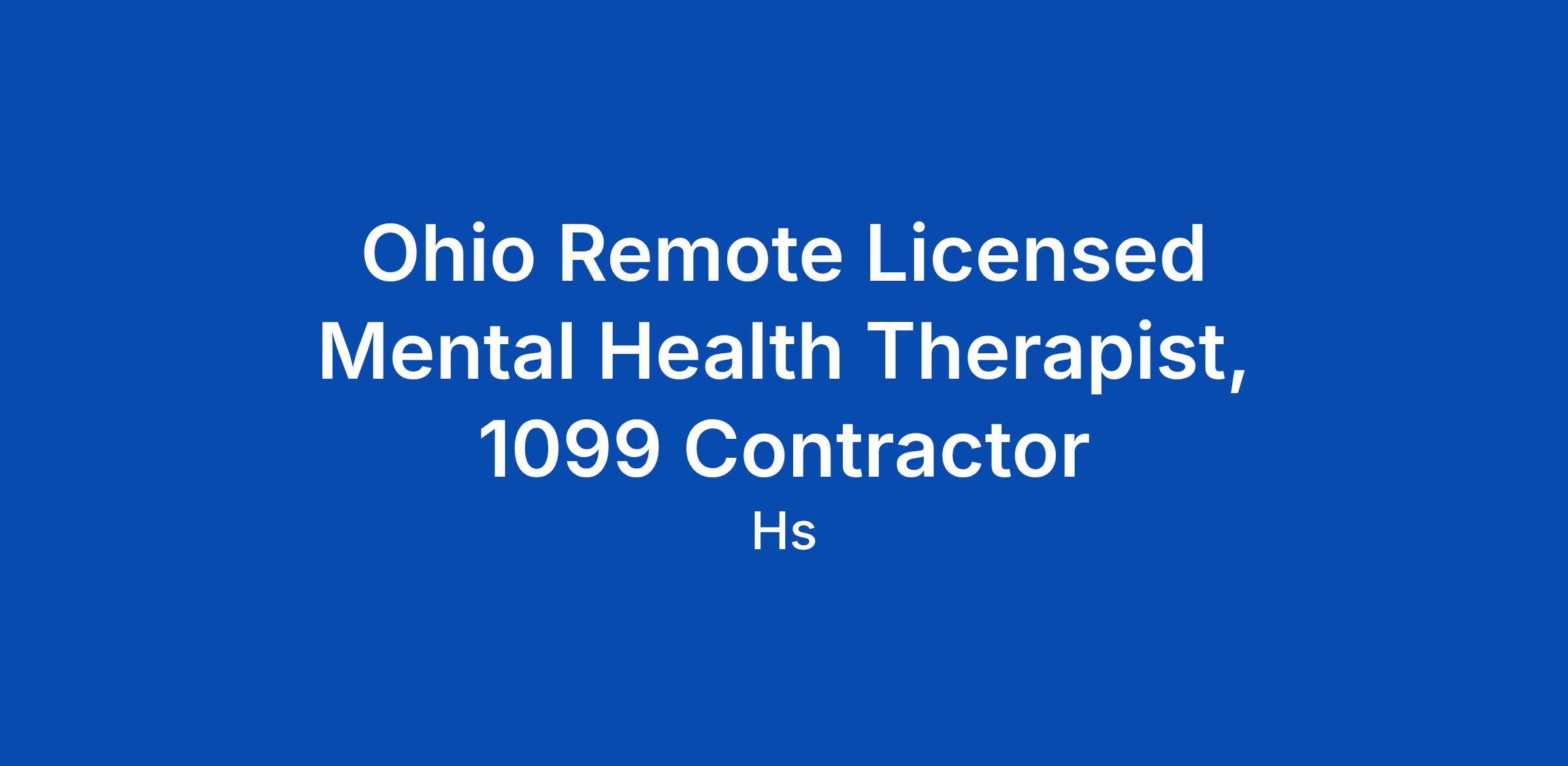 Ohio Remote Licensed Mental Health Therapist, 1099 Contractor