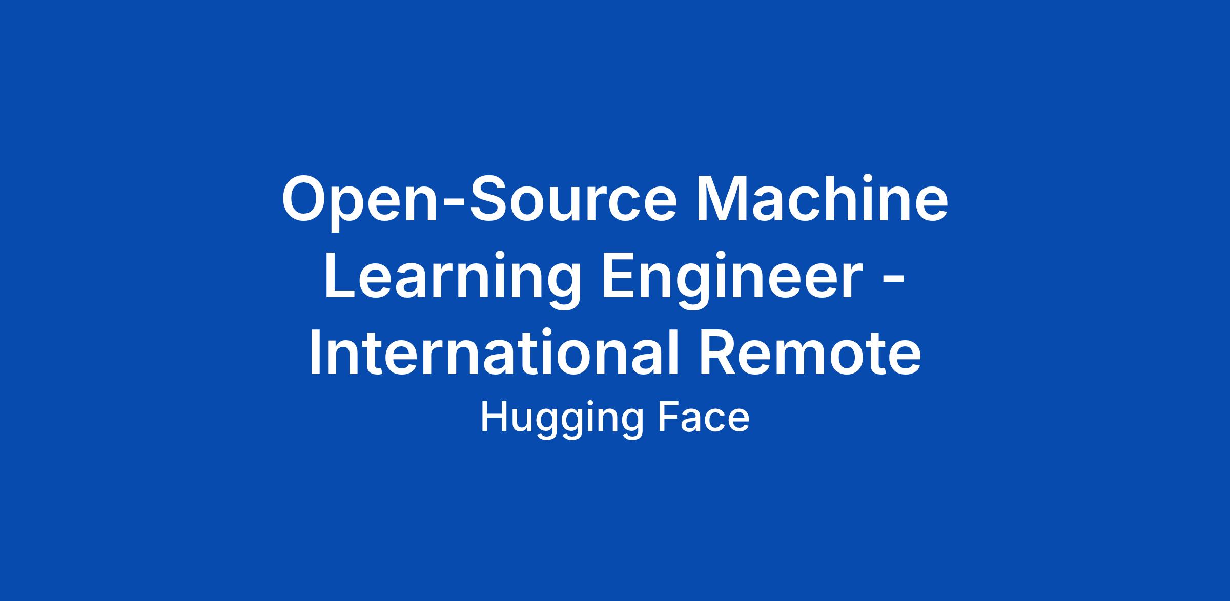 As an open-source Machine Learning Engineer, you will work to improve the open-source machine learning ecosystem. You will mainly work with existing open-source li...