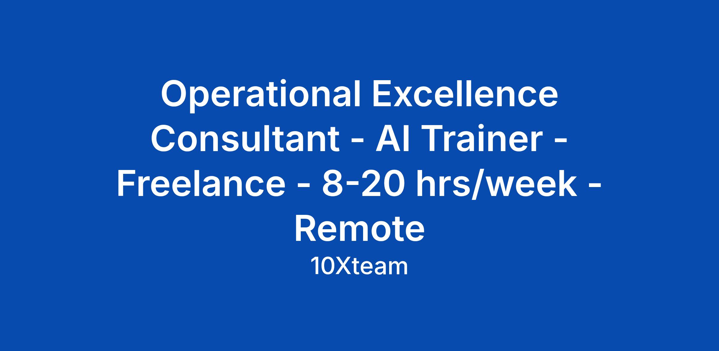 Operational Excellence Consultant - AI Trainer - Freelance - 8-20 hrs/week - Remote