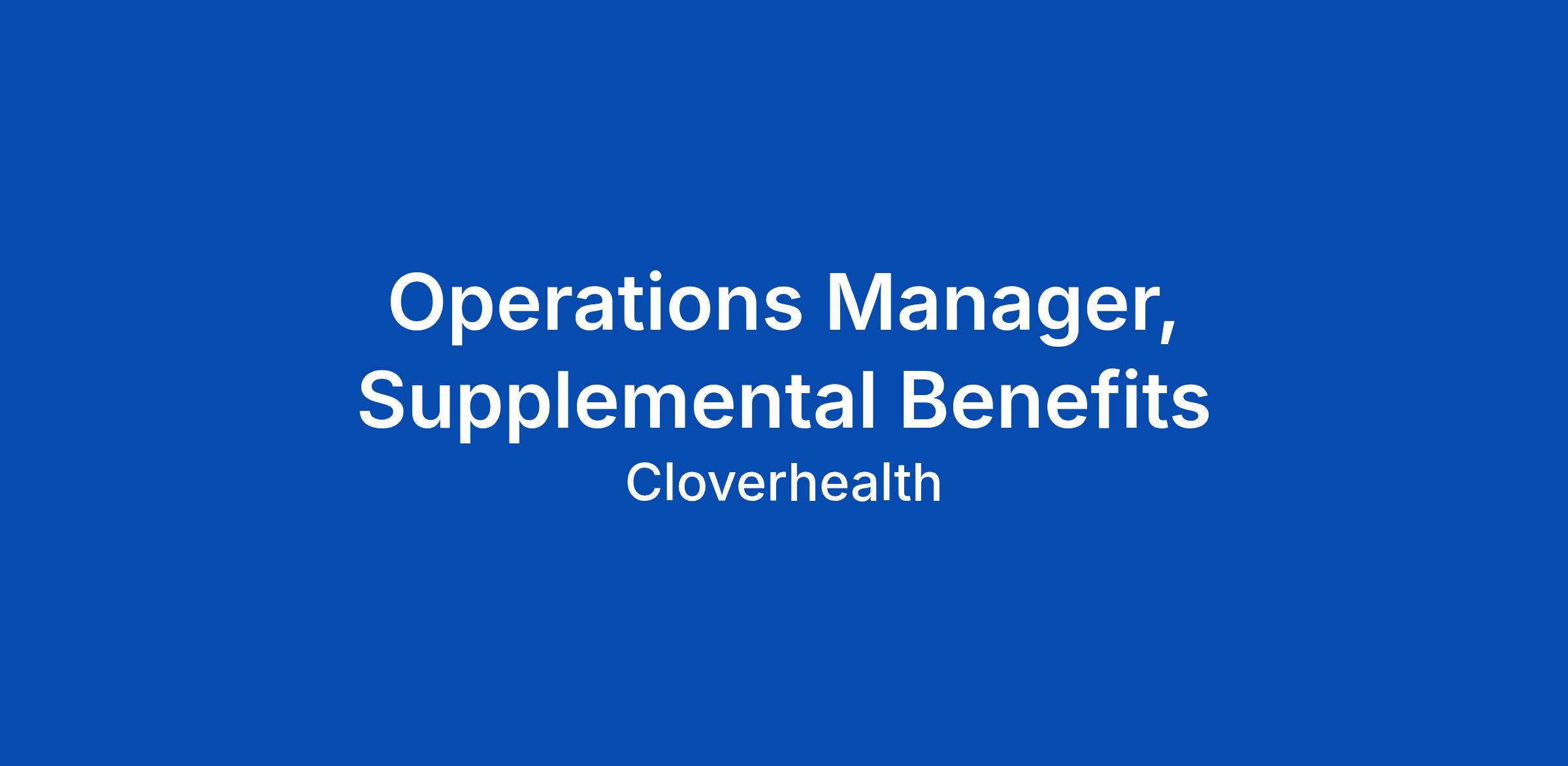 - Support ongoing optimization of Cloverβs supplemental benefits portfolio through data-driven insights and continuous improvement initiatives.