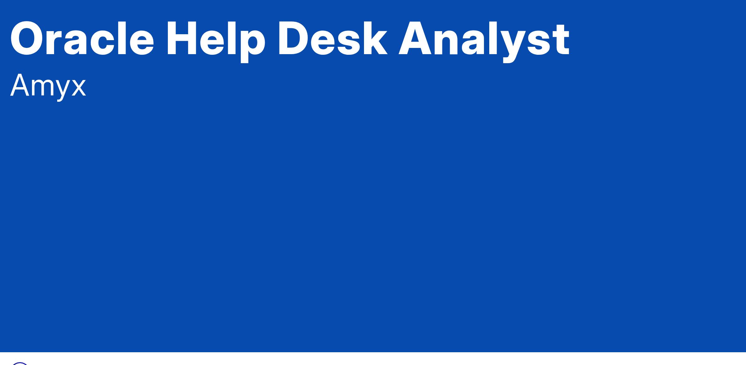 Amyx is seeking to hire a Oracle General Ledger expert to support our DAI Help Desk in the DC area. Will be supporting many agencies in the General Ledger modules in Oracle, including Budgets, federal accounting, and sub-ledger activities. The project supports sustainment activities for 24 different agencies.
