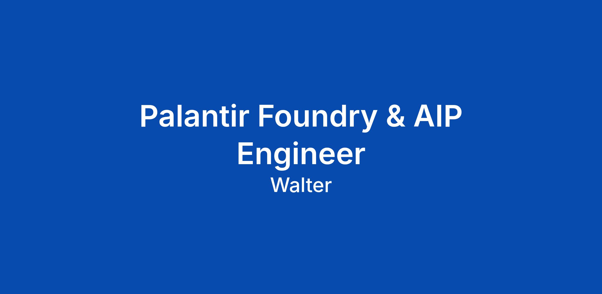 Our client is seeking a Palantir Foundry & AIP Engineer with hands-on experience across the full Foundr...