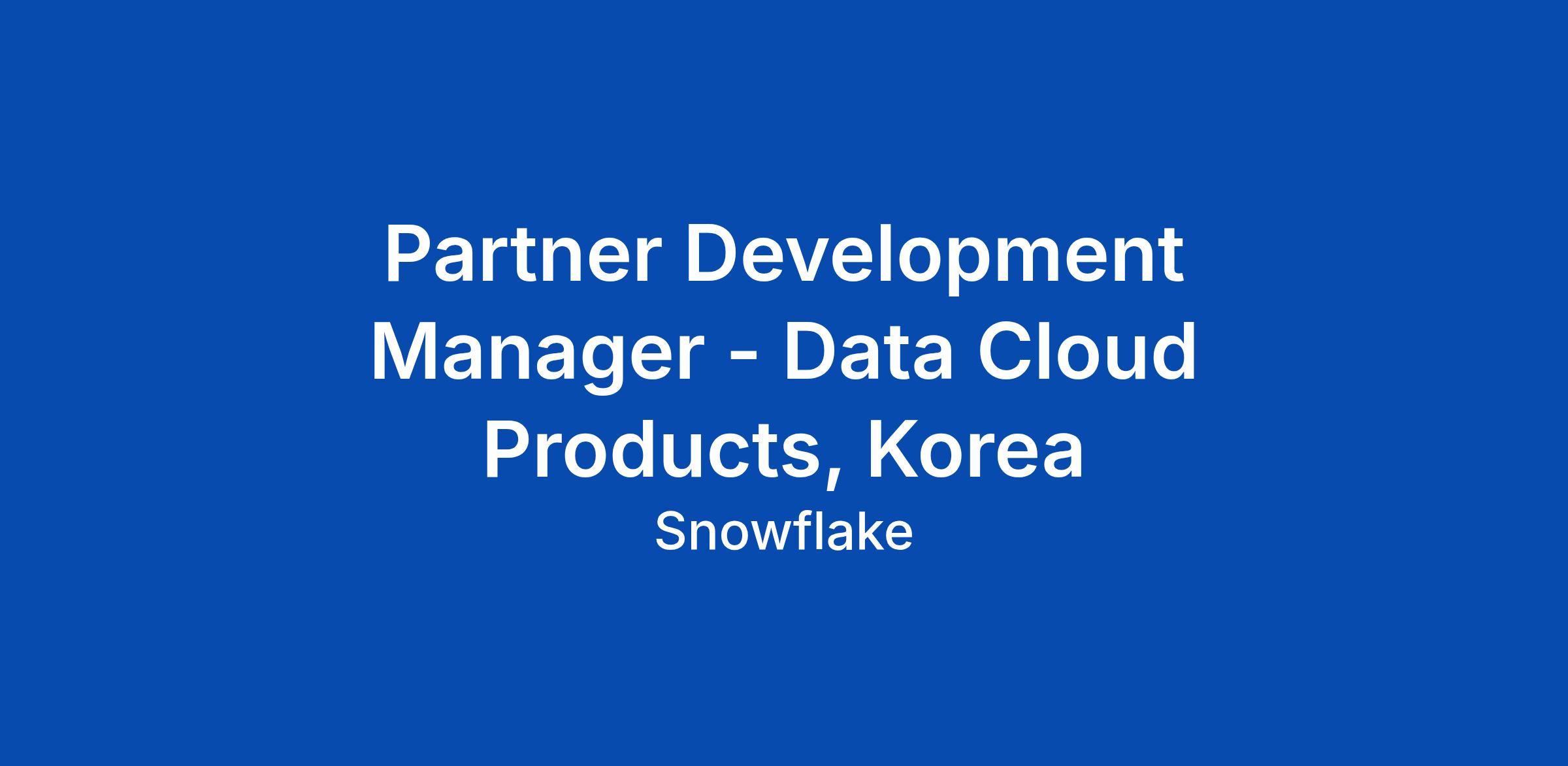 At Snowflake, we are powering the era of the agentic enterprise. To usher in this new era, we seek AI-native thinkers across every function who are energized by the opportunity to reinvent how they work. You donβt just use tools; you possess an innate curiosity, treating AI as a high-trust collaborator that is core to how you solve problems and accelerate your impact. We look for low-ego individuals who thrive in dynamic and fast-moving environments and move with an experimental mindset β who rapidly test emerging capabilities to discover simpler, more powerful ways to deliver results. At Snowflake, your role isn't just to execute a function, but to help redefine the future of how work gets done. Snowflake is experiencing exponential growth and as a result we are scaling up our Data Cloud Product Team. As the Strategic Partner Development Manager for the Korea Data Cloud Product, youβll drive the growth of our strategic ecosystem of data, application and ISV partners - helping to shape the future of Snowflake across Korea. At the heart of Snowflakeβs innovative architecture is the ability to securely share https://docs.snowflake.com/en/user-guide/data-sharing-intro.html data and ap... Click Apply to read the full job description.