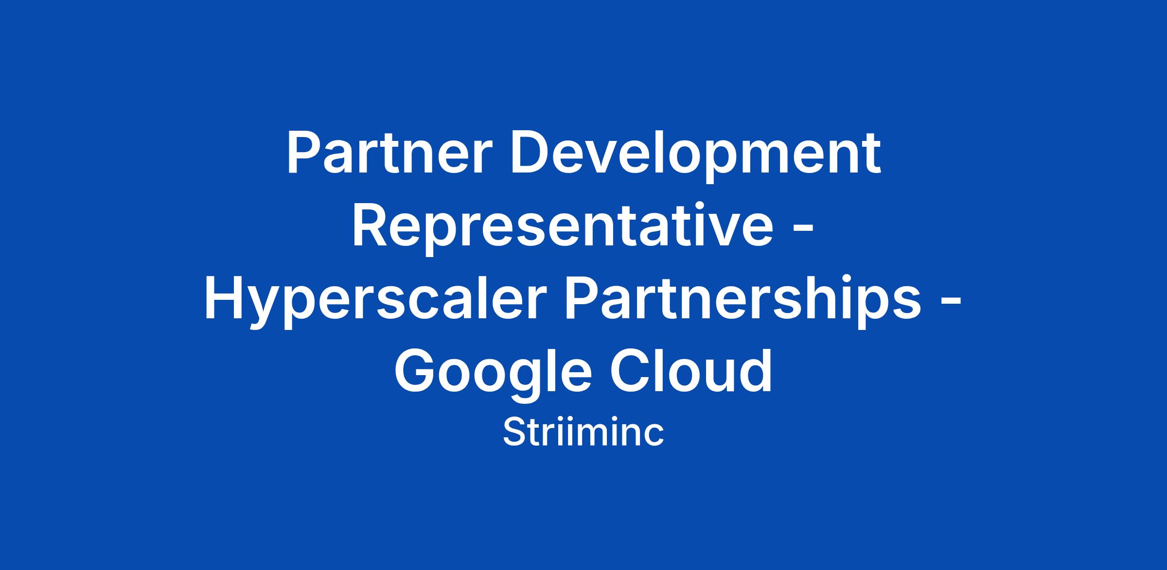 Partner Development Representative - Hyperscaler Partnerships - Google Cloud