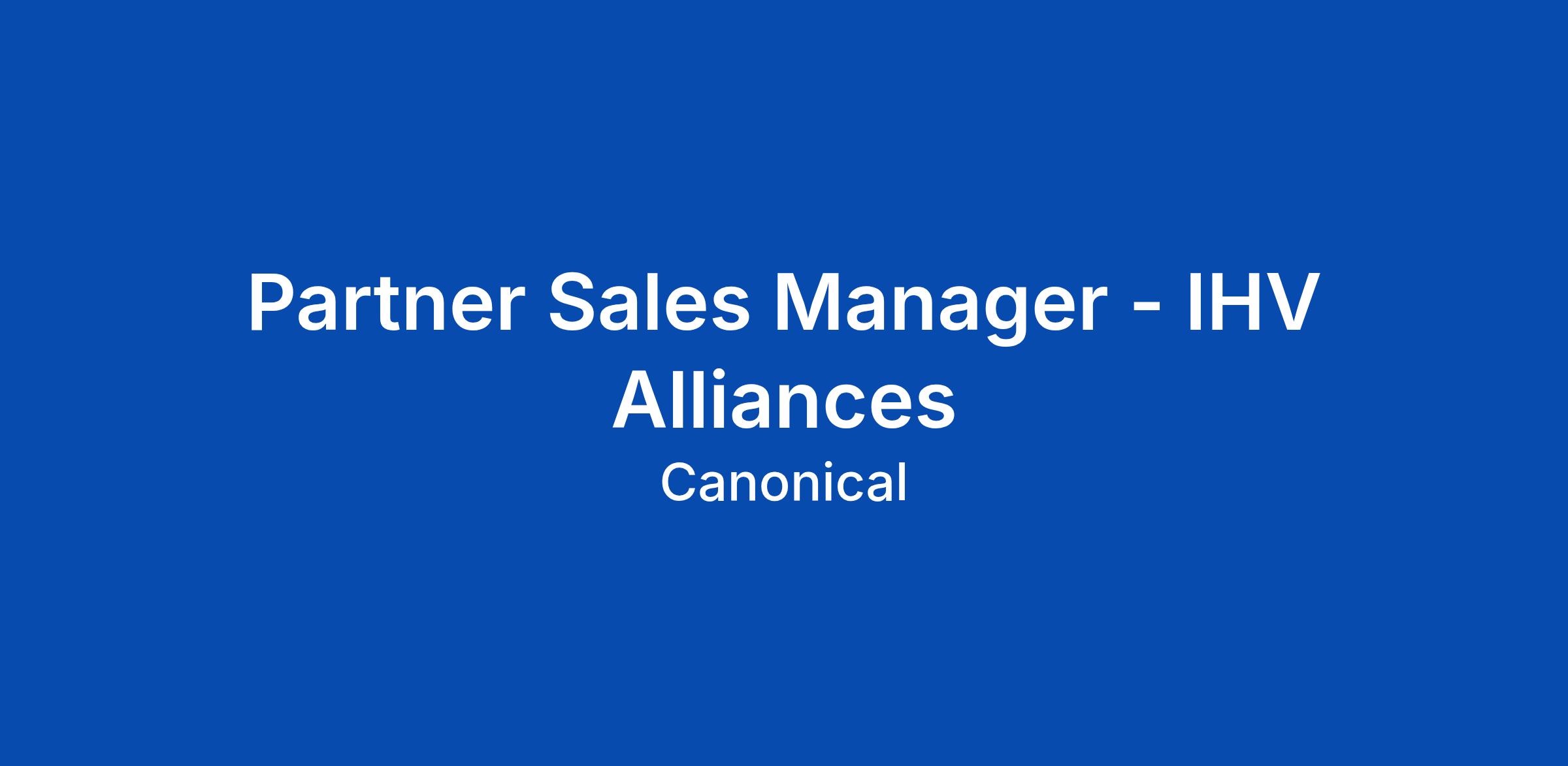 Partner Sales Manager - IHV Alliances