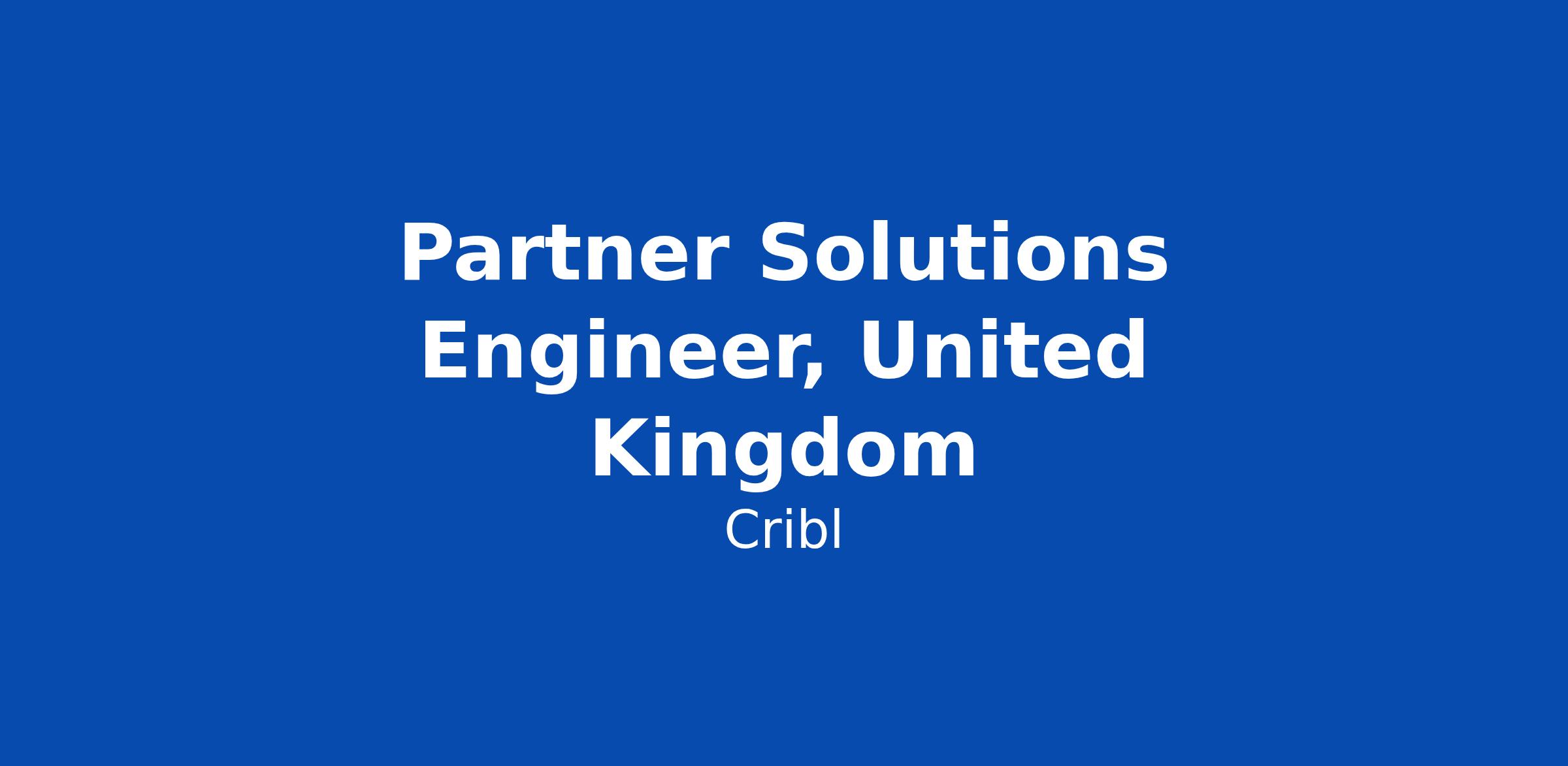 As the Partner Solutions Engineer, you’ll be the technical face of Cribl for our strategic partners across your assigned region, enabling partner presales and consultants to run high‑quality discoveries, PoVs, and deployments themselves. You will also have... Click Apply to read the full job description.