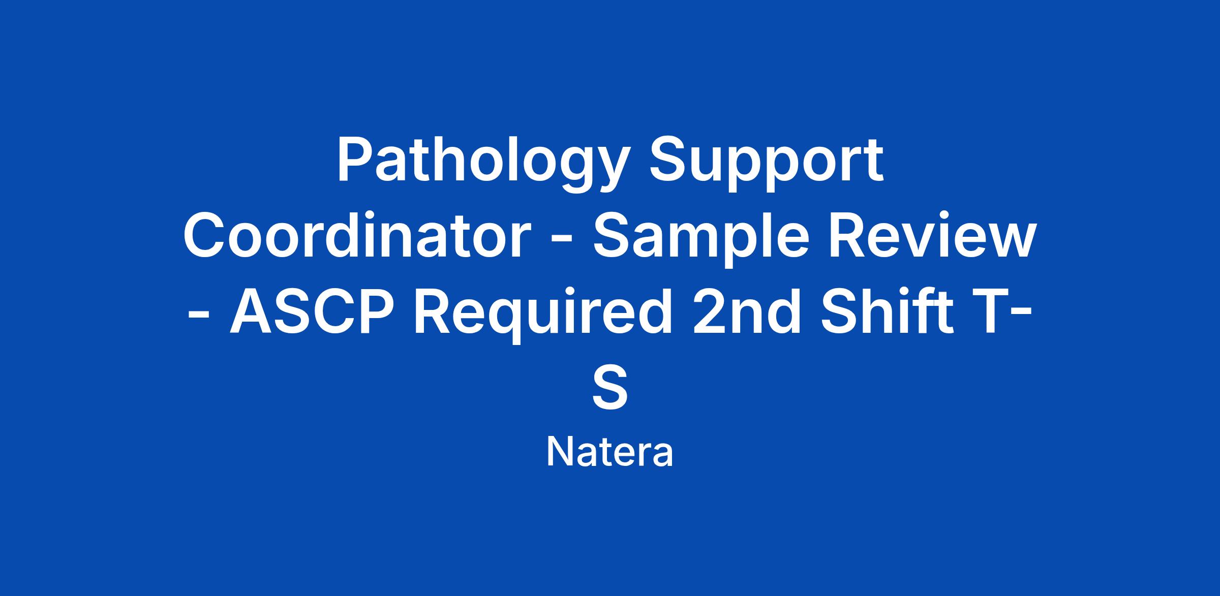 Pathology Support Coordinator - Sample Review - ASCP Required 2nd Shift T-S