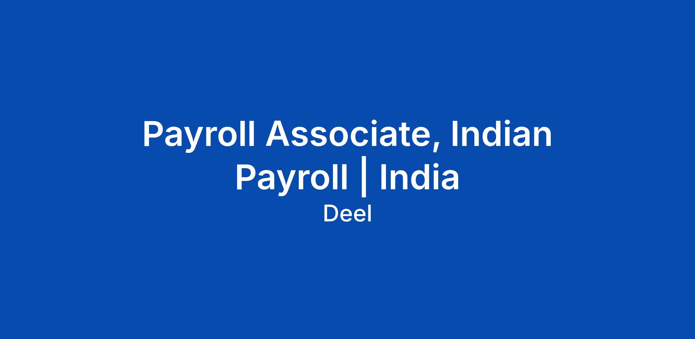 Payroll Associate, Indian Payroll | India