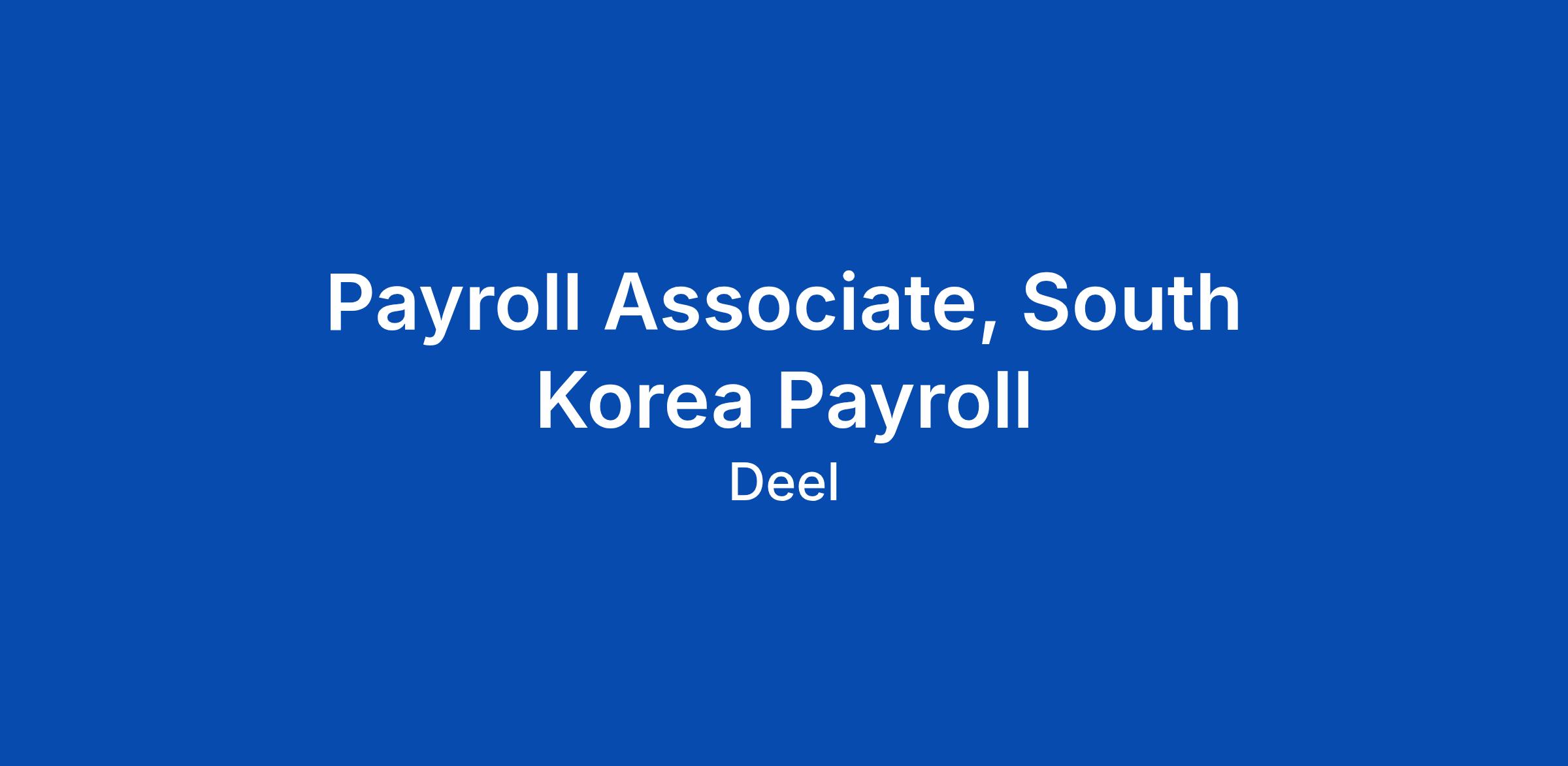 Payroll Associate, South Korea Payroll