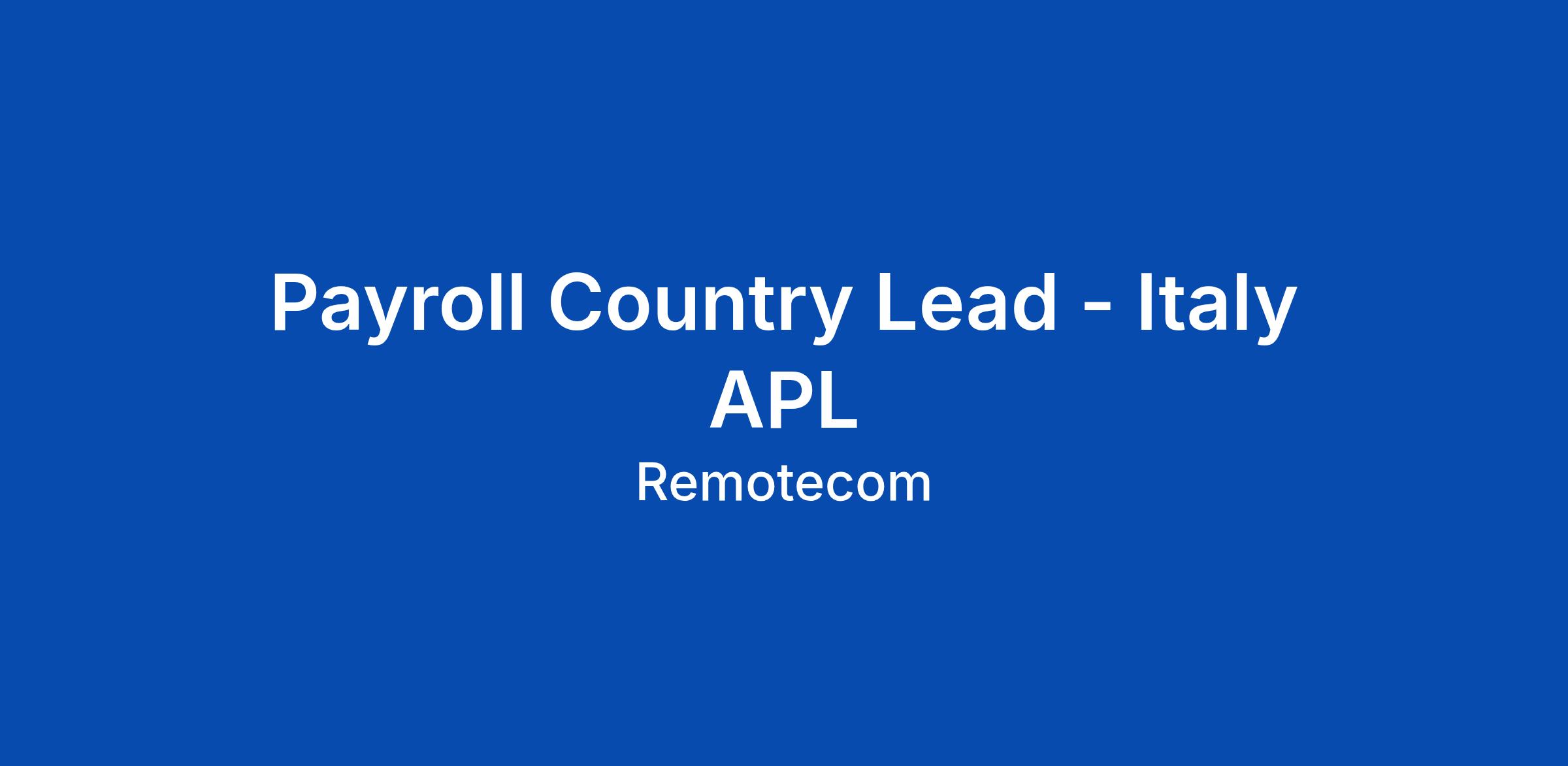 Payroll Country Lead - Italy APL