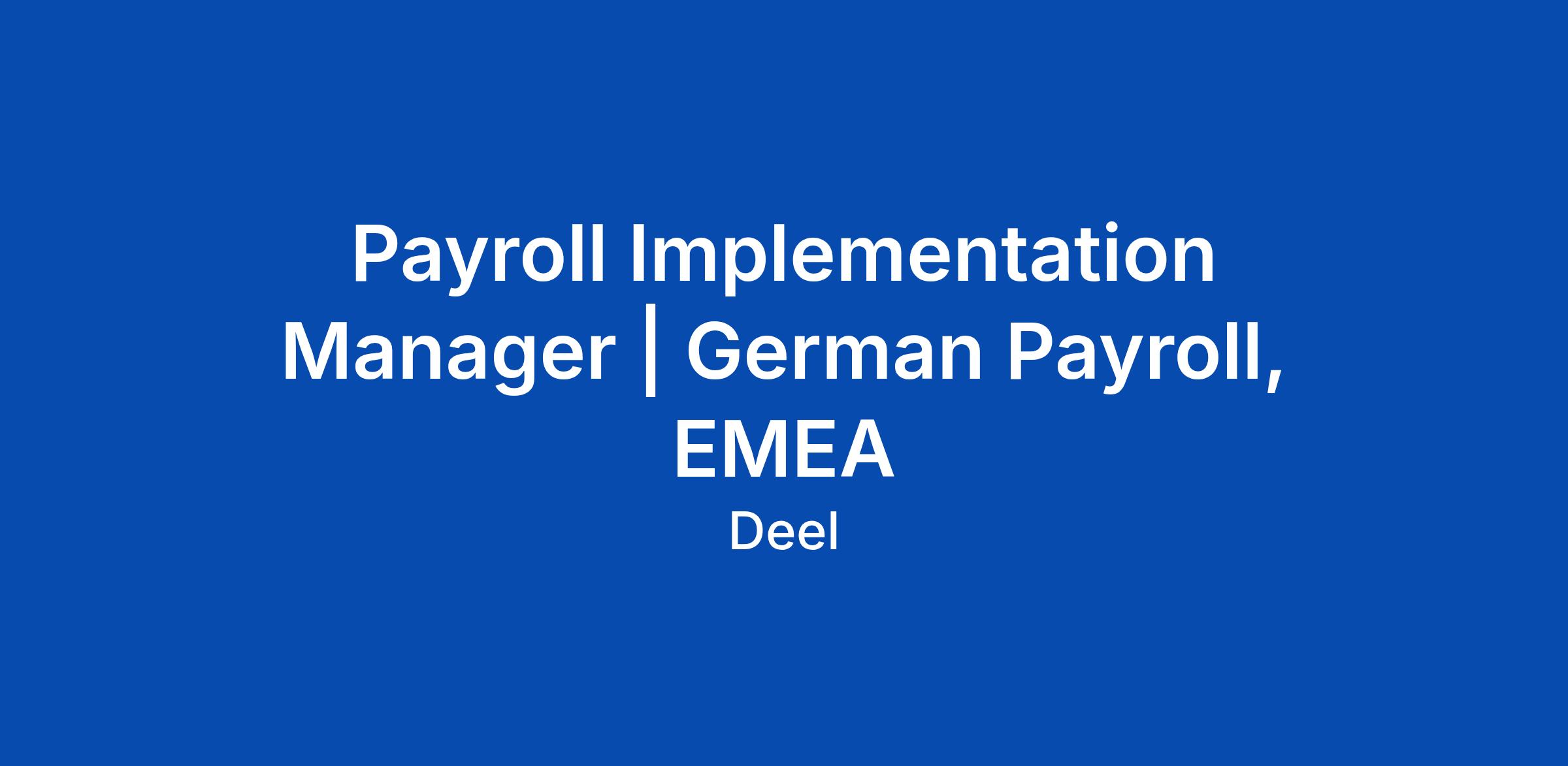 Payroll Implementation Manager | German Payroll, EMEA