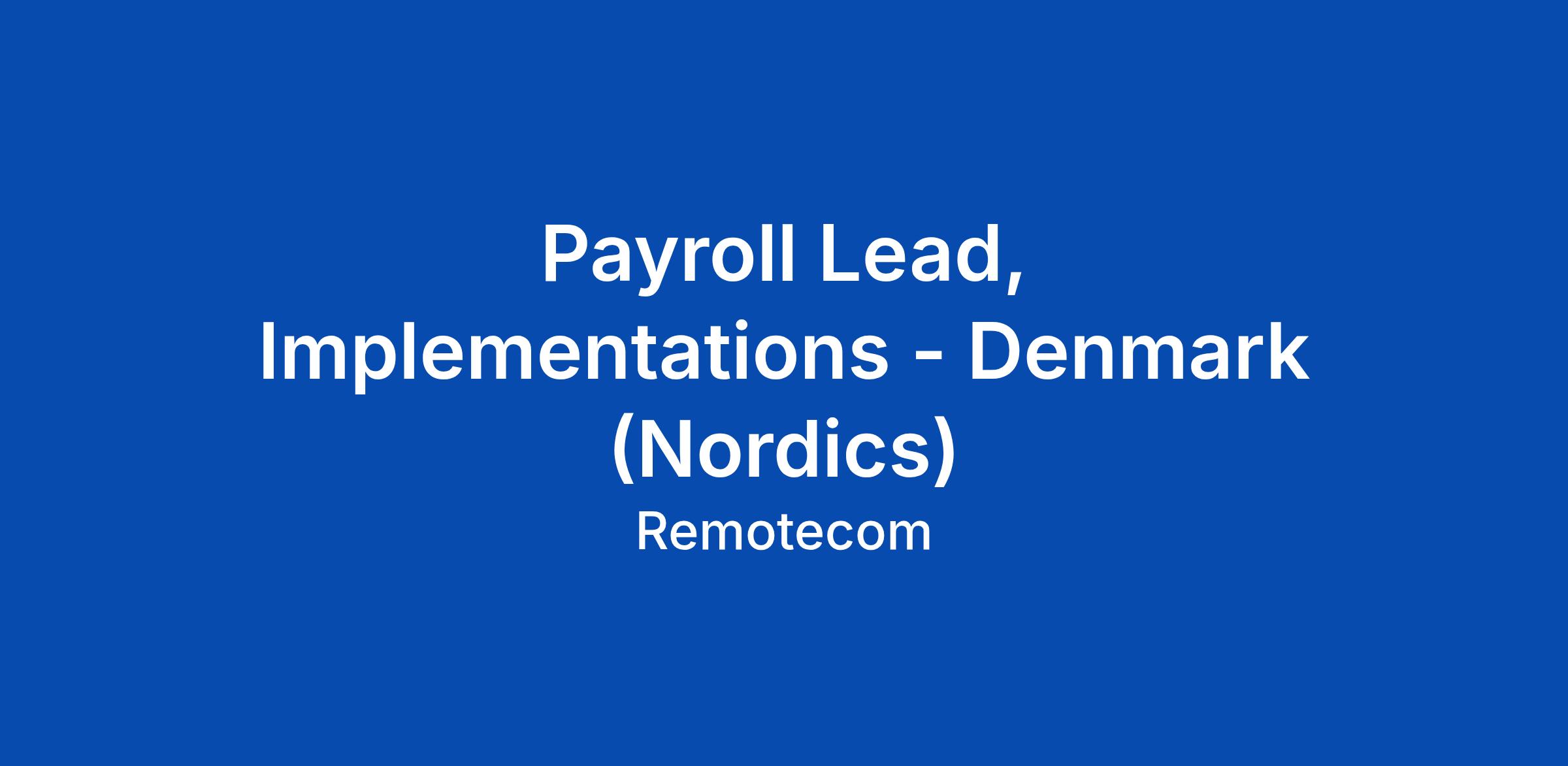 Payroll Lead, Implementations - Denmark (Nordics)