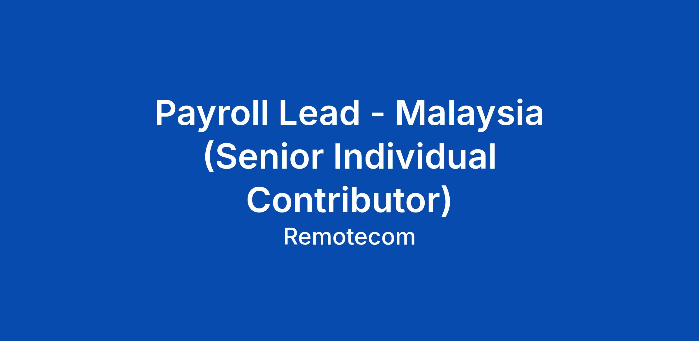 Payroll Lead - Malaysia (Senior Individual Contributor)