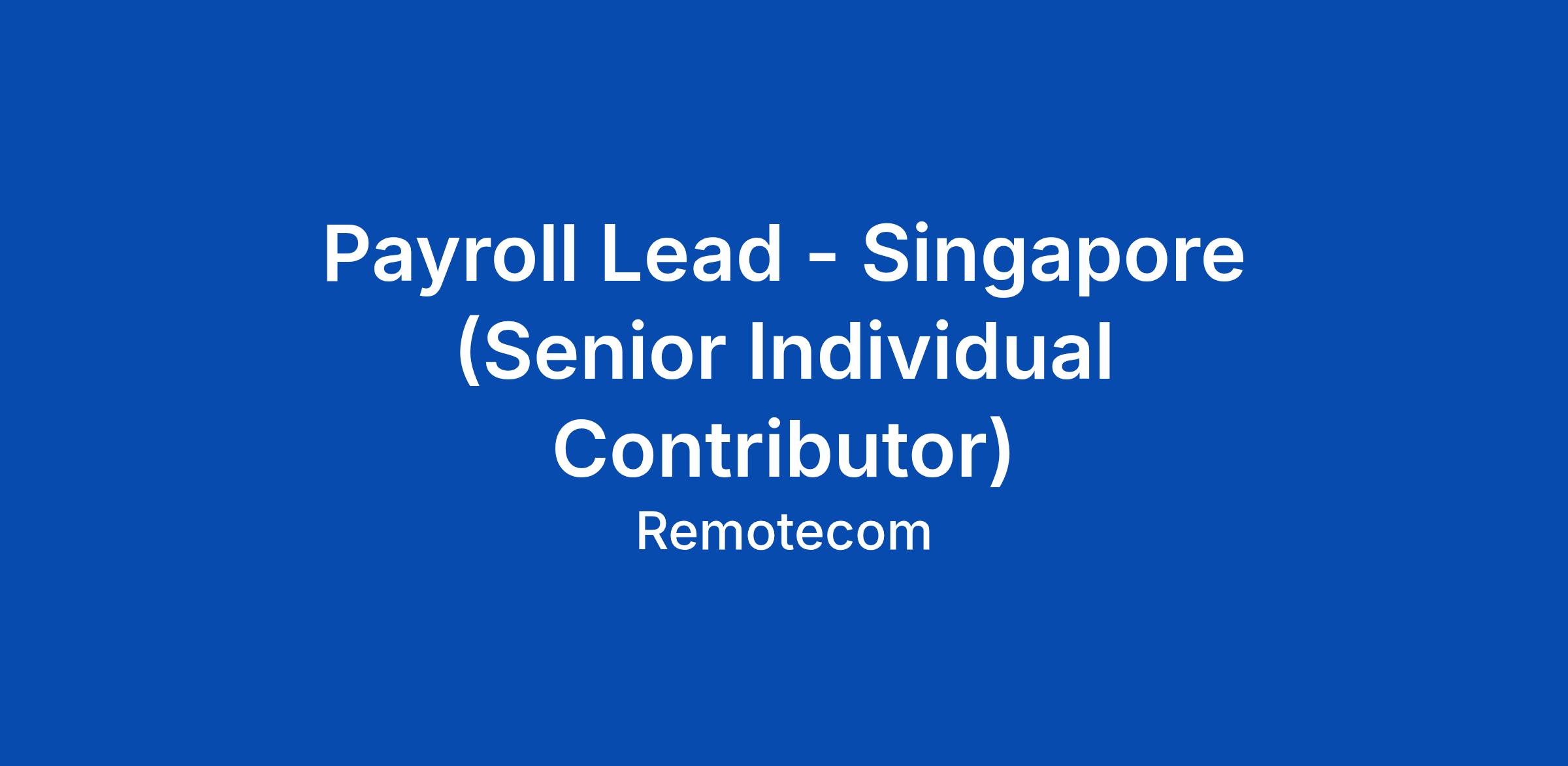Payroll Lead - Singapore (Senior Individual Contributor)