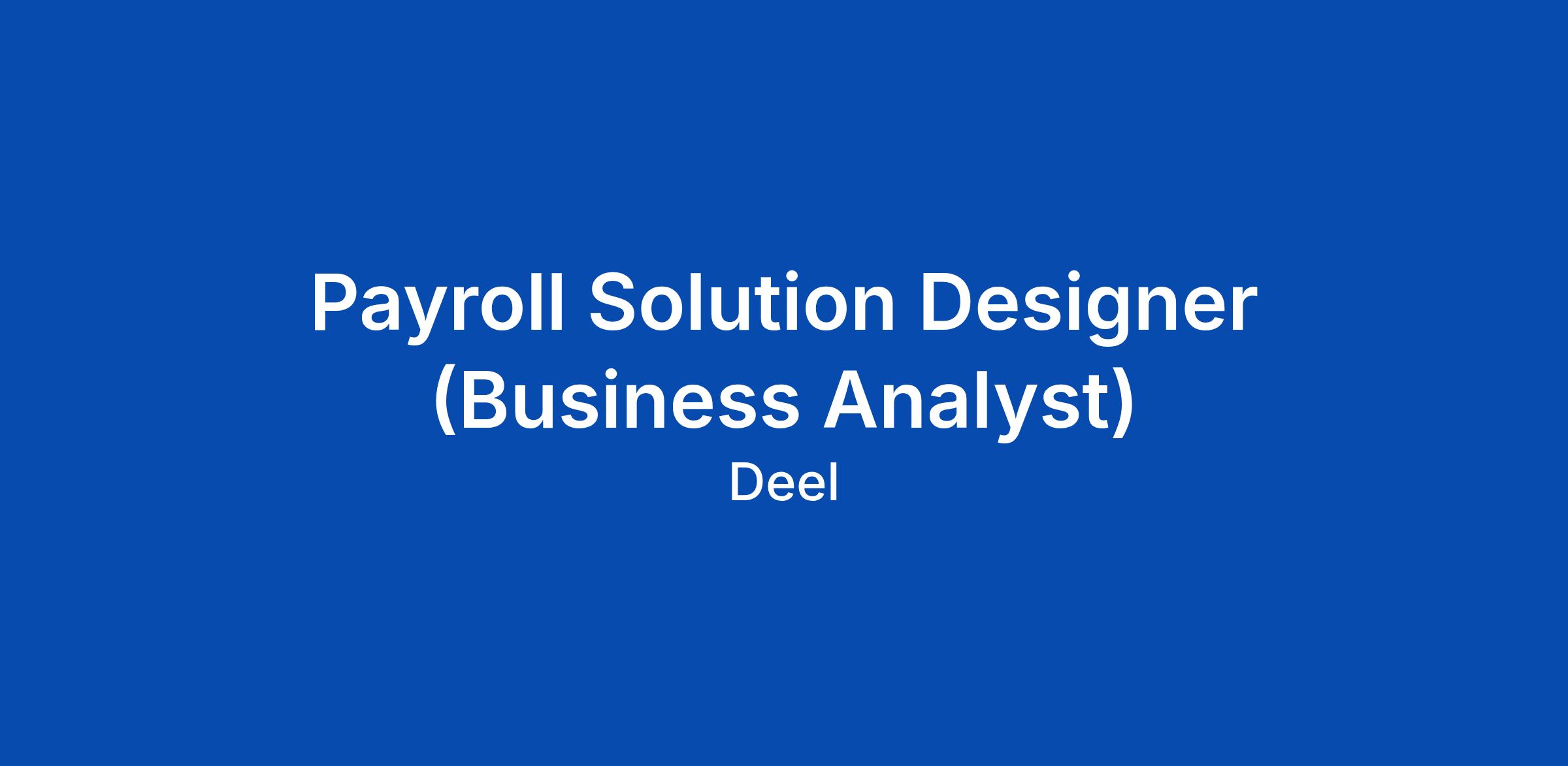 Payroll Solution Designer (Business Analyst)