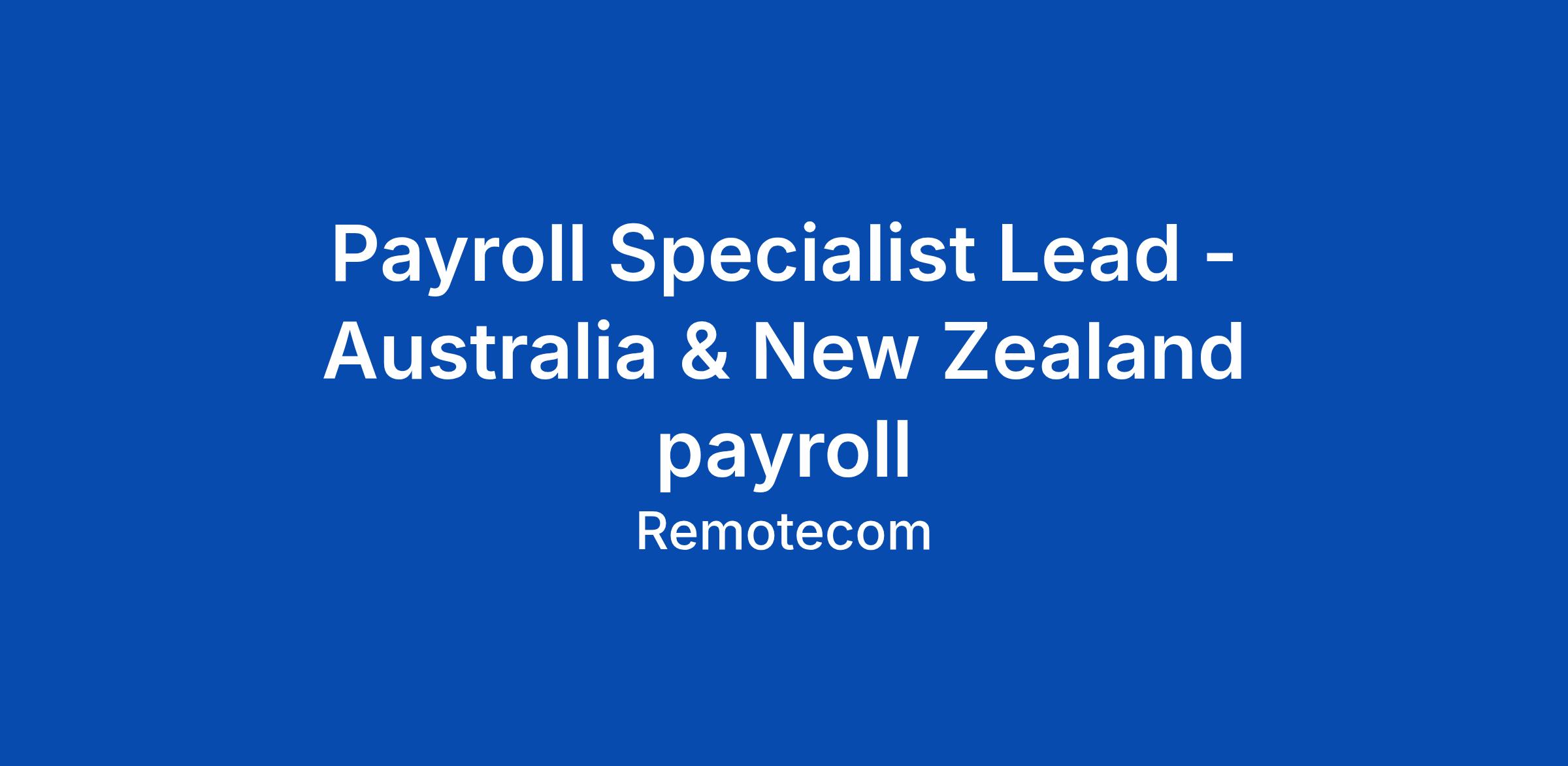 Payroll Specialist Lead - Australia & New Zealand payroll