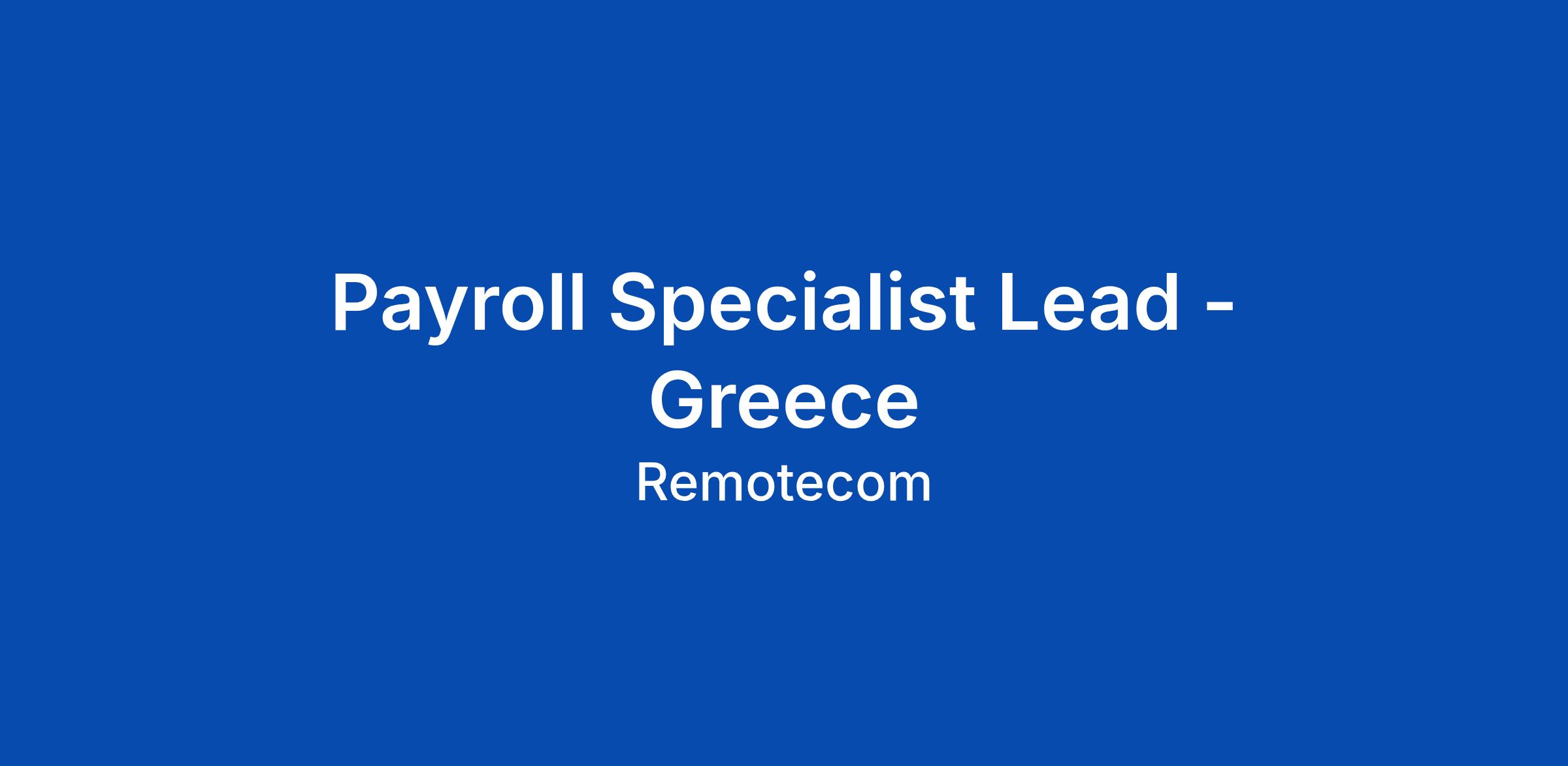 Payroll Specialist Lead - Greece