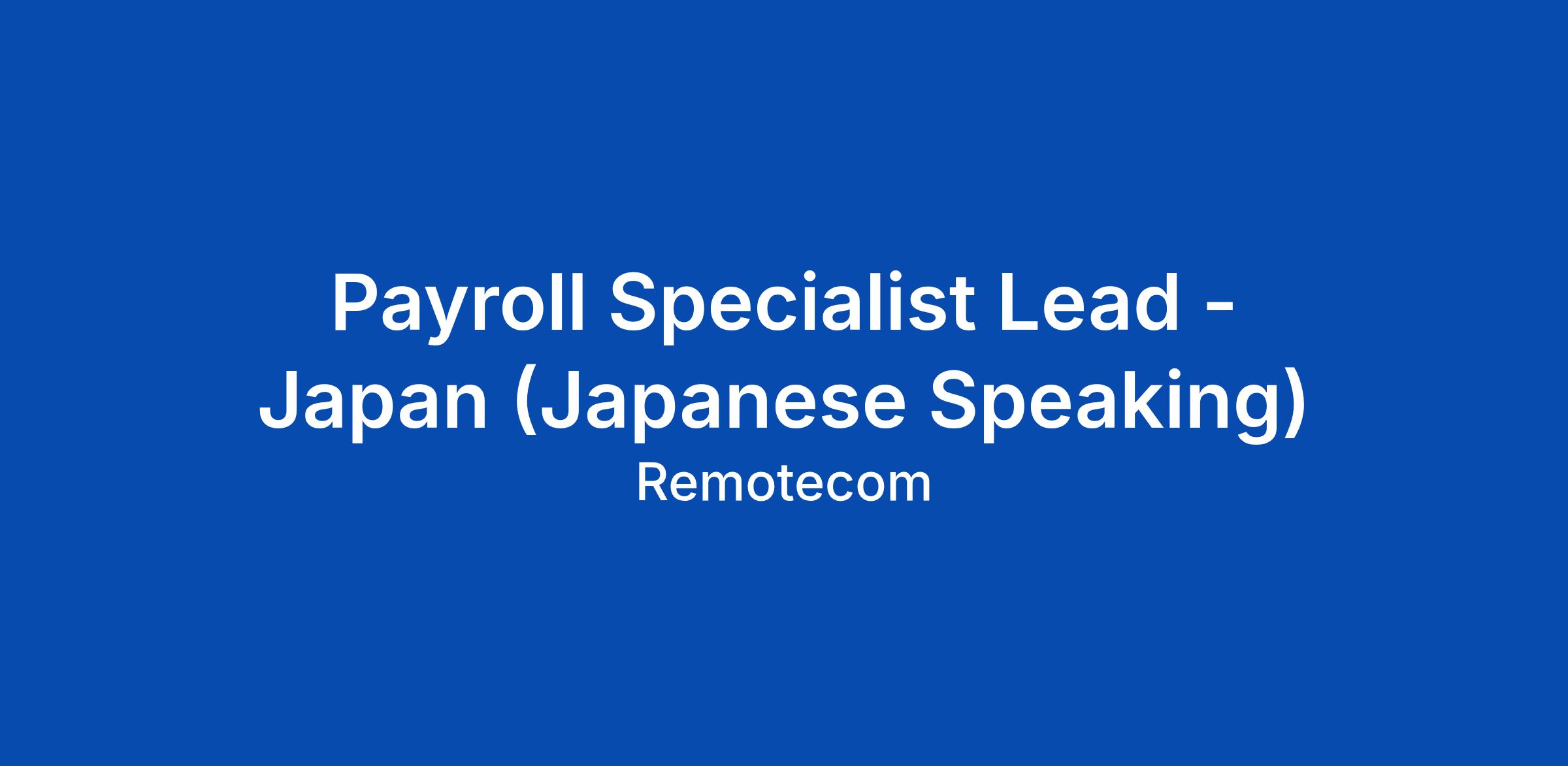 Payroll Specialist Lead - Japan (Japanese Speaking)