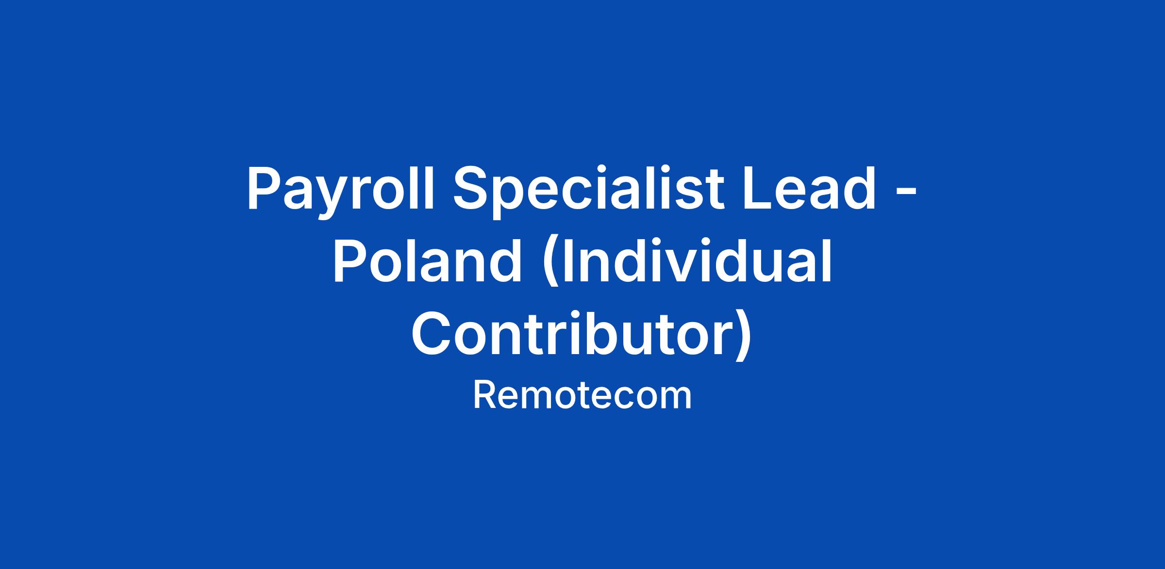 Payroll Specialist Lead - Poland (Individual Contributor)