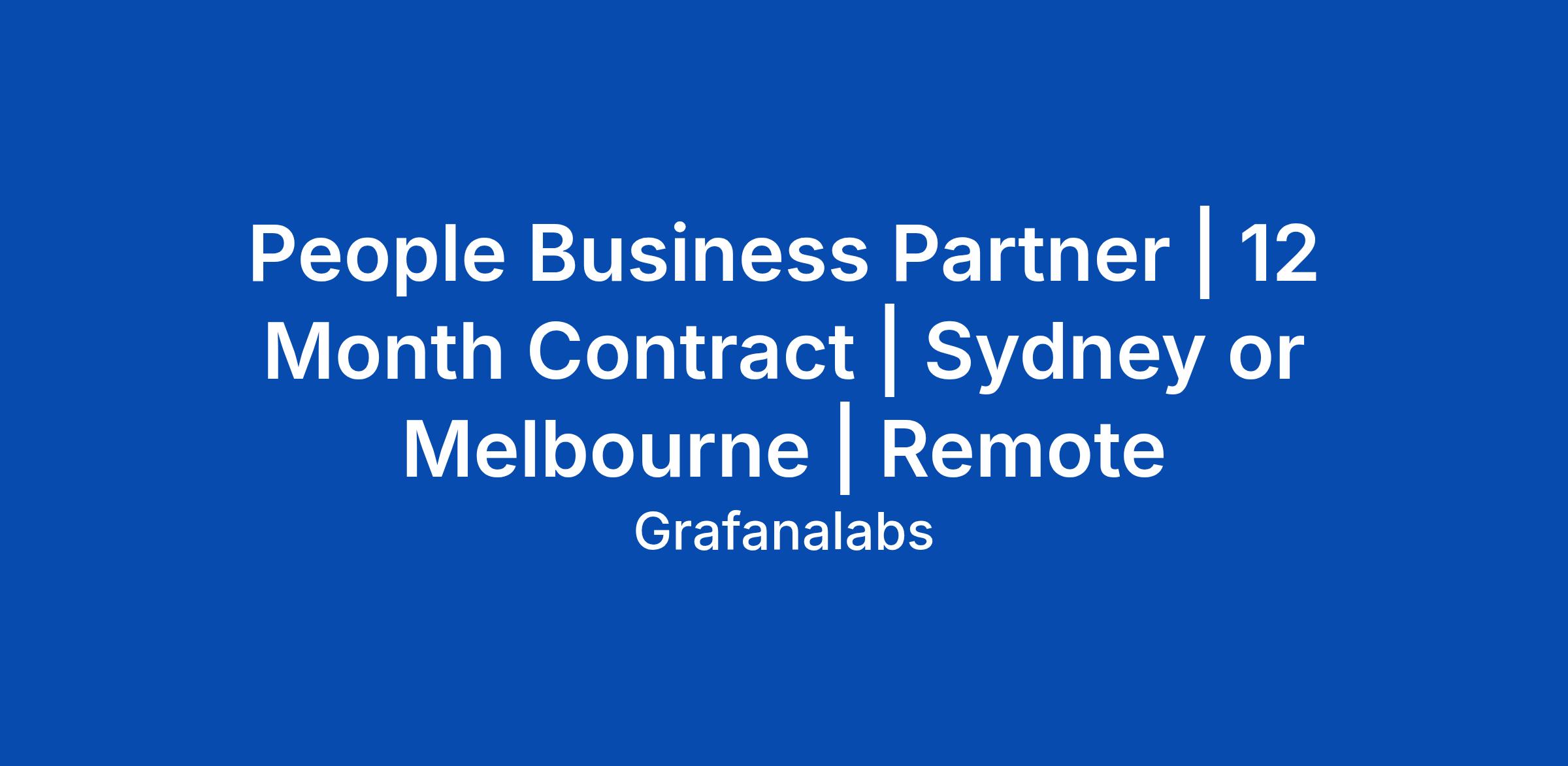 People Business Partner | 12 Month Contract | Sydney or Melbourne | Remote