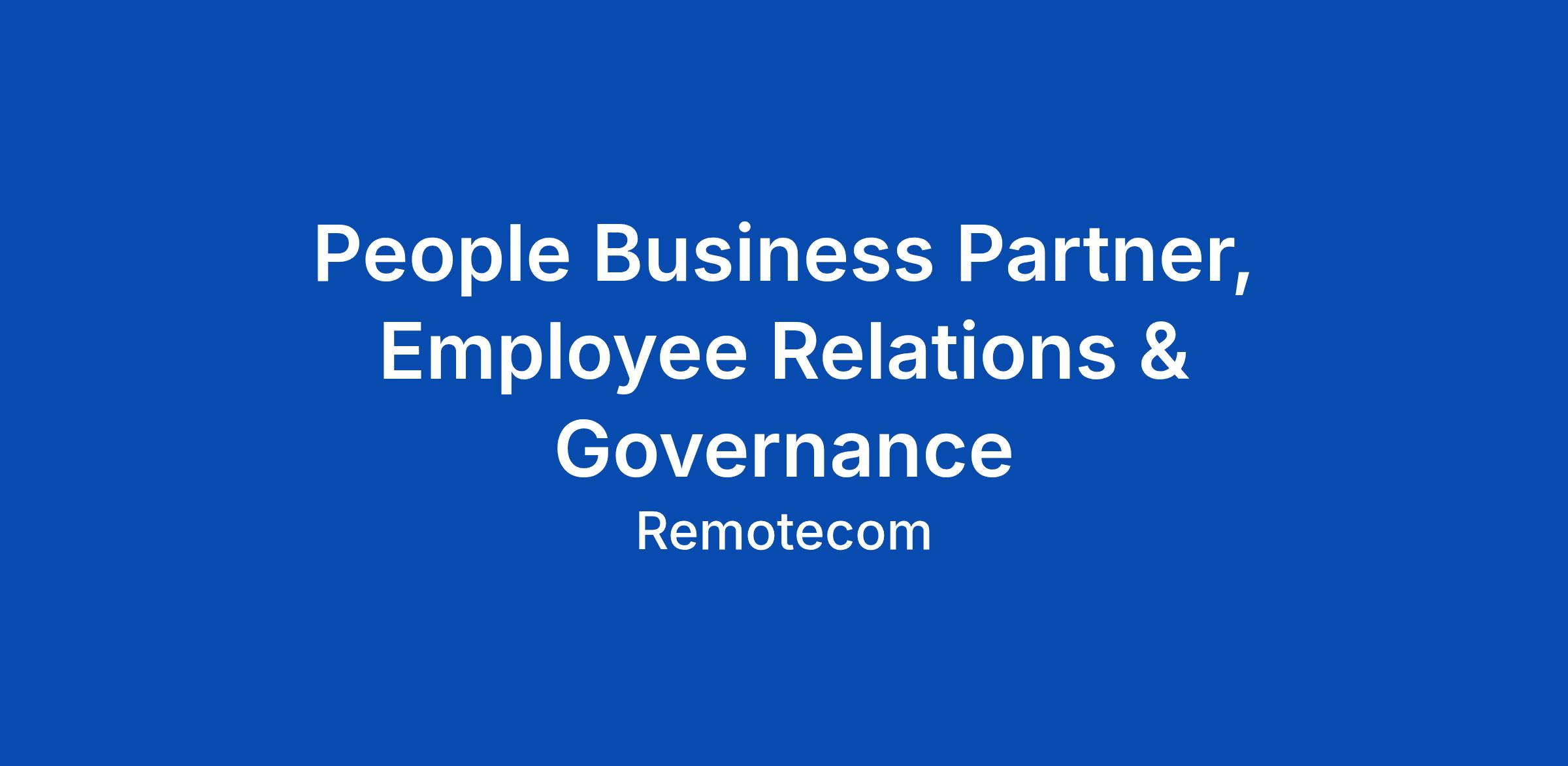 People Business Partner, Employee Relations & Governance