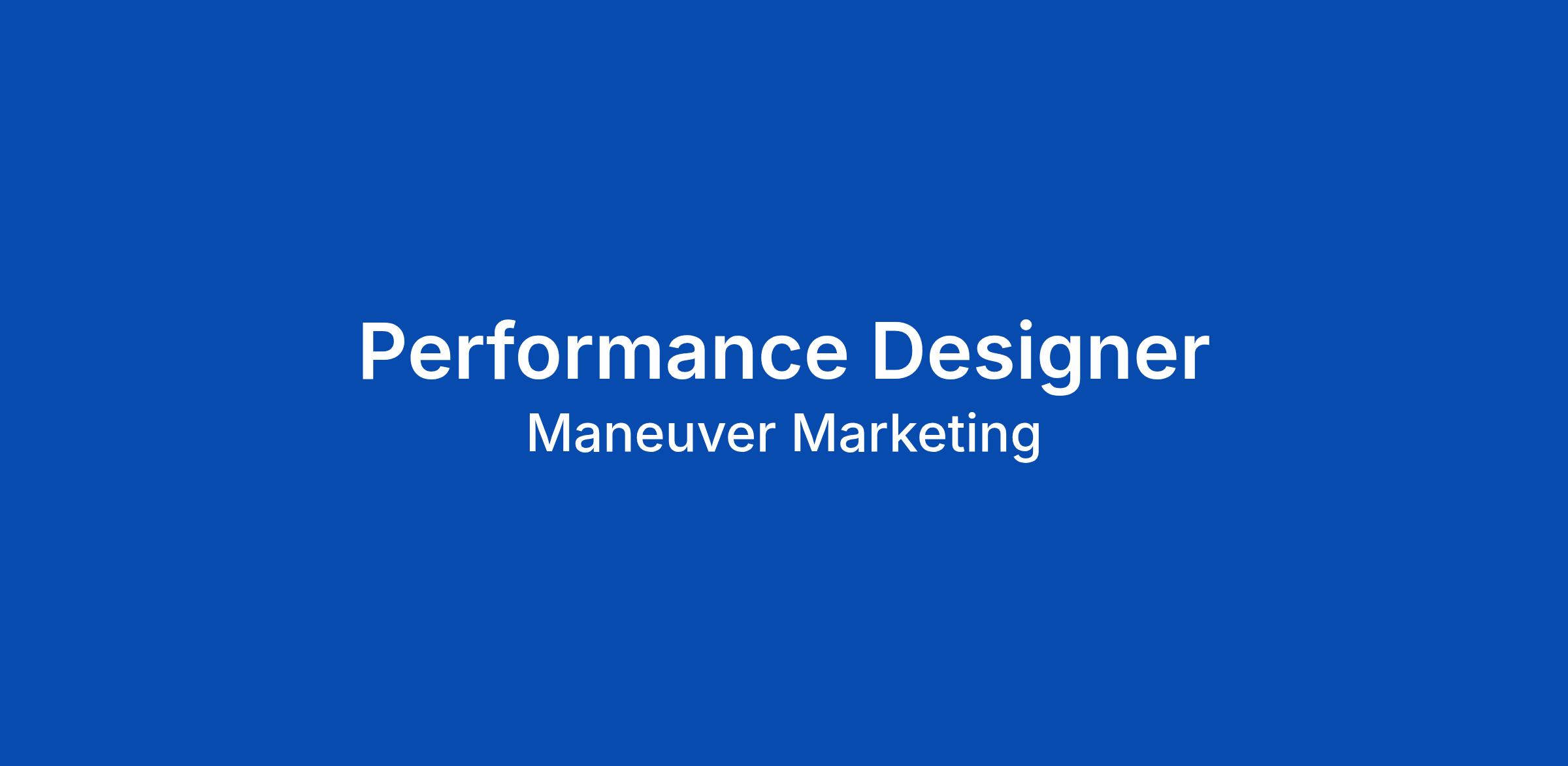 BUILD, SCALE & OPERATE LEADING DTC BRANDS ALONGSIDE A-PLAYERS MANEUVER MARKETING Our Vision, Mission & Success are fuelled by our commitment to be a driving force of positive change to the health of everyday consumers, providing conscious, high-quality & innovative supplement products. In just 5 years, we kicked off our own DTC Health & Wellness brand from scratch and scaled it to USD$100M+ in annual sales, serving more than 3,000,000 customers worldwide with an average of 4,000 daily orders across 9 SKUs. These results caught the attention of The Financial Times https://www.ft.com/high-growth-asia-pacific-ranking-2023, as they ranked us among APACs top High-Growth Companies. We have also been awarded 2nd place on the E50 Awards https://www.sph.com.sg/media-centre/media-releases/fifty-local-smes-honoured-for-pioneering-success-and-innovation-at-30th-e50-awards/, jointly organised by The Business Times and KPMG in Singapore. This is just the beginning of our journey, and you could be part of the next stage of our growth! YOUR NEXT ROLE We are looking for a Performance Designer to join our high-growth performance marketing team. Youβll be working in responsive pods with growth strate... Click Apply to read the full job description.