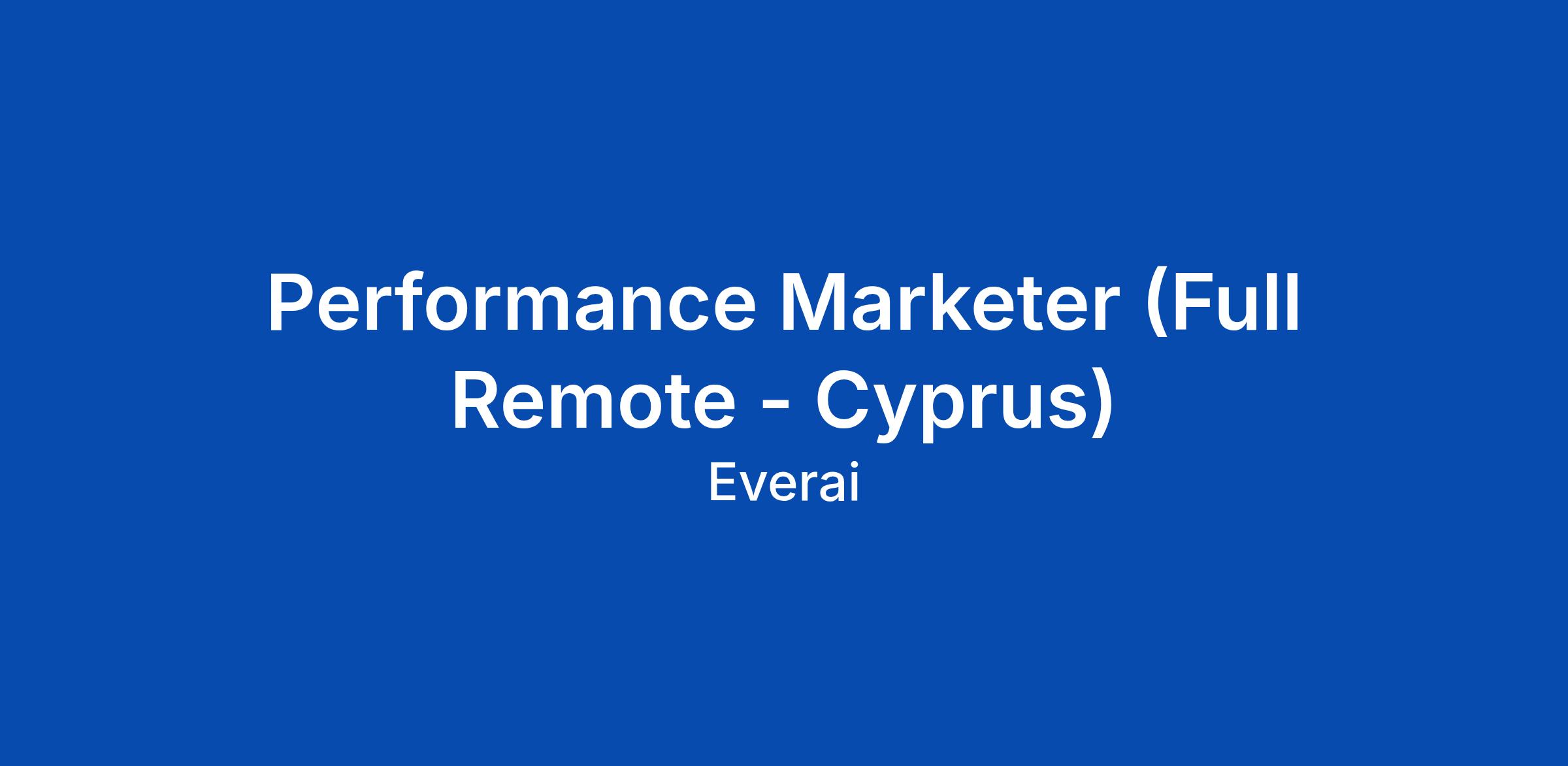 Performance Marketer (Full Remote - Cyprus)