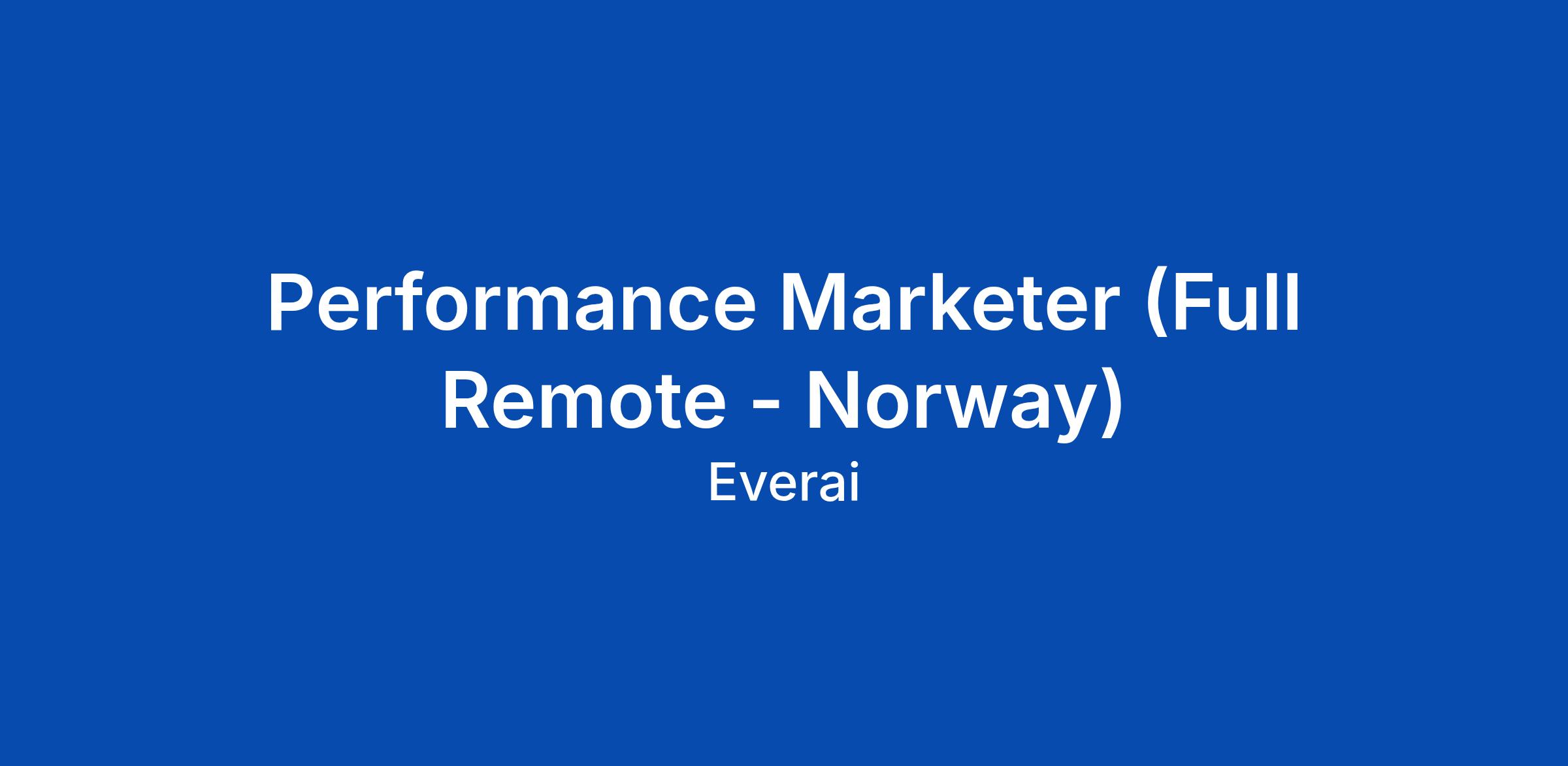 Performance Marketer (Full Remote - Norway)
