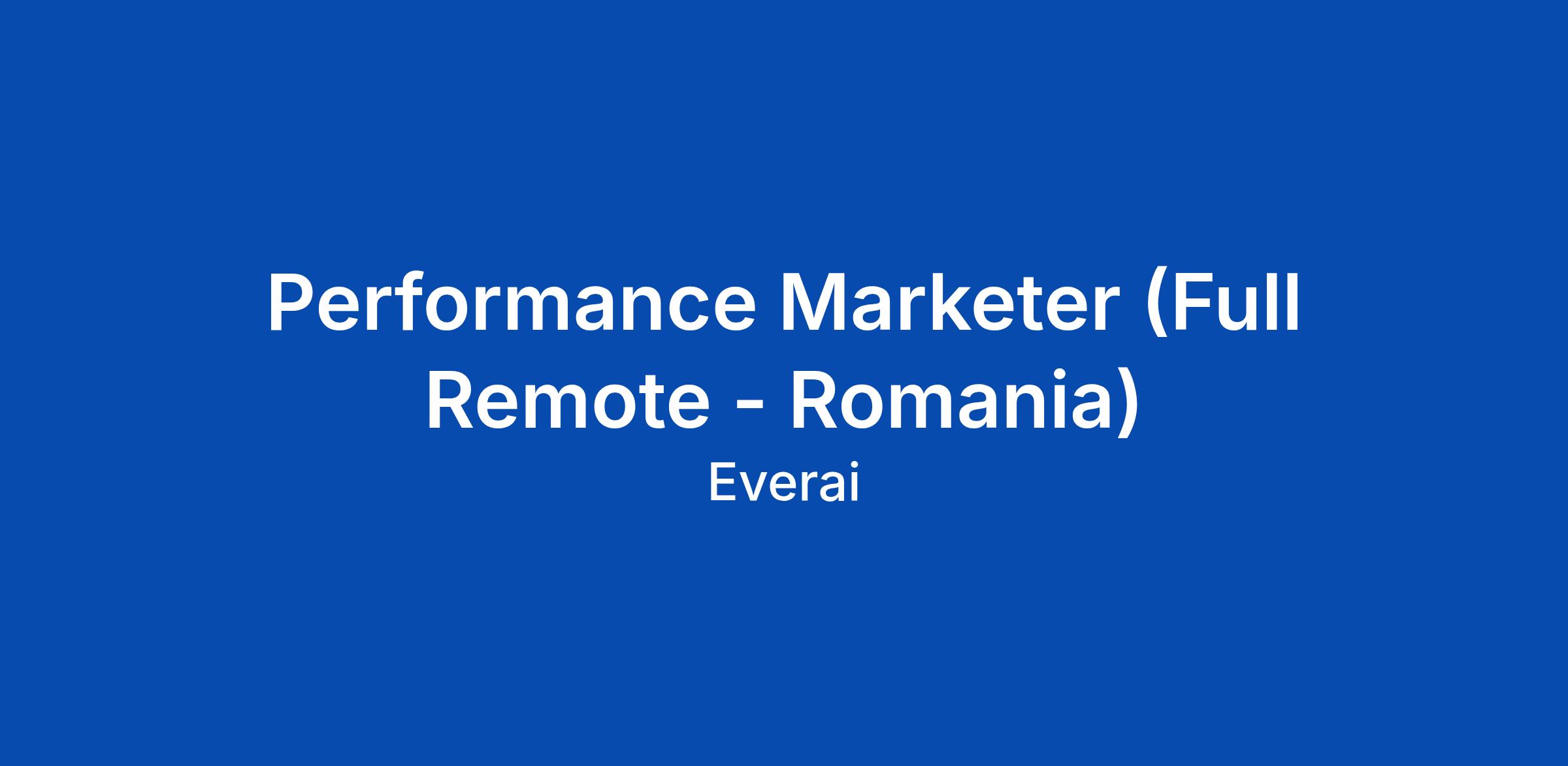 Performance Marketer (Full Remote - Romania)