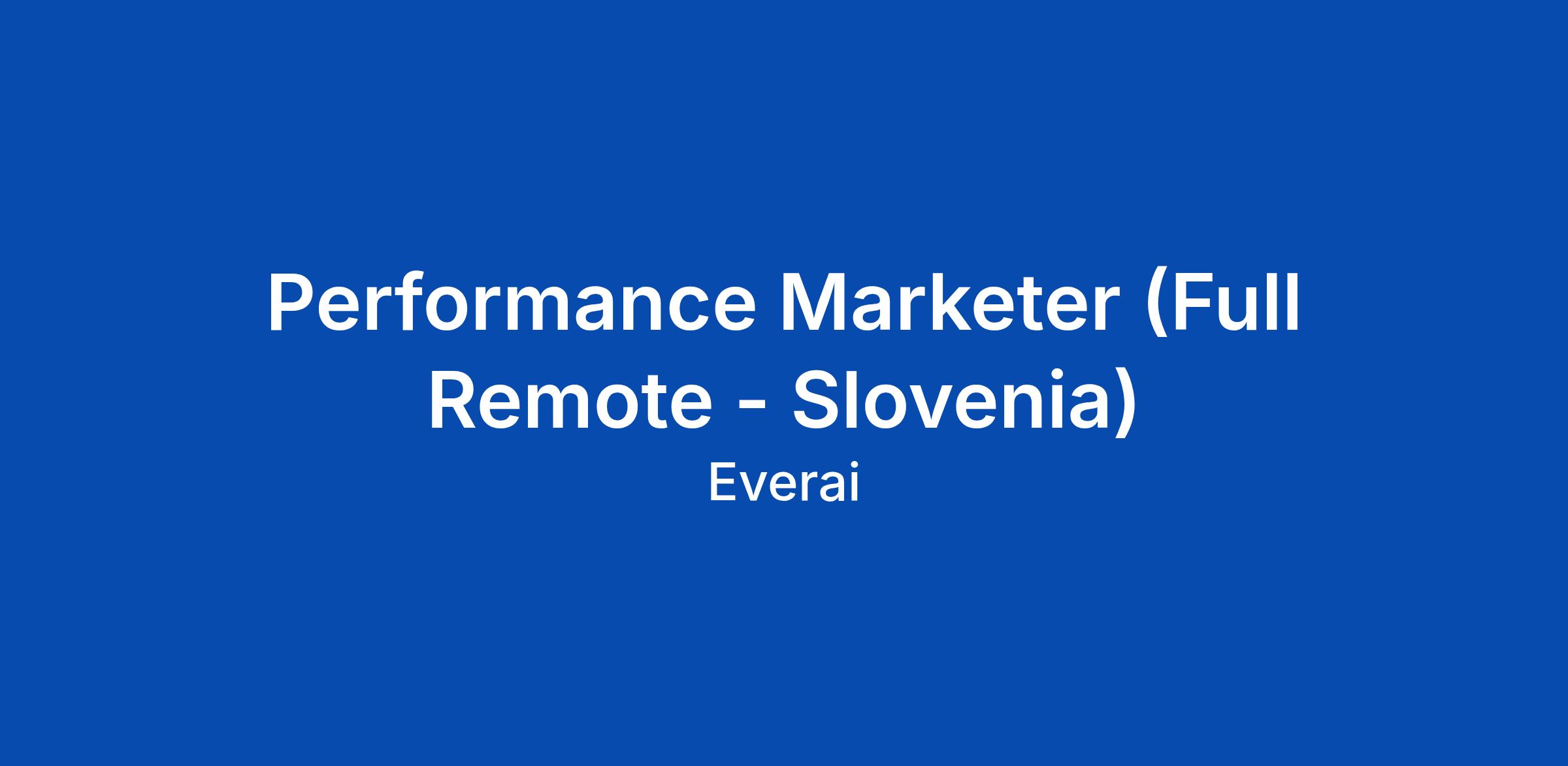 Performance Marketer (Full Remote - Slovenia)