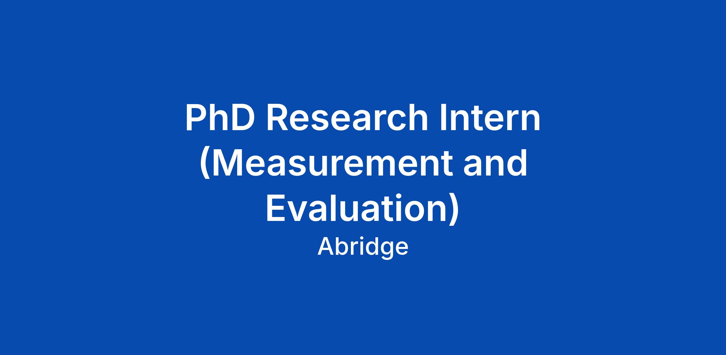PhD Research Intern (Measurement and Evaluation)
