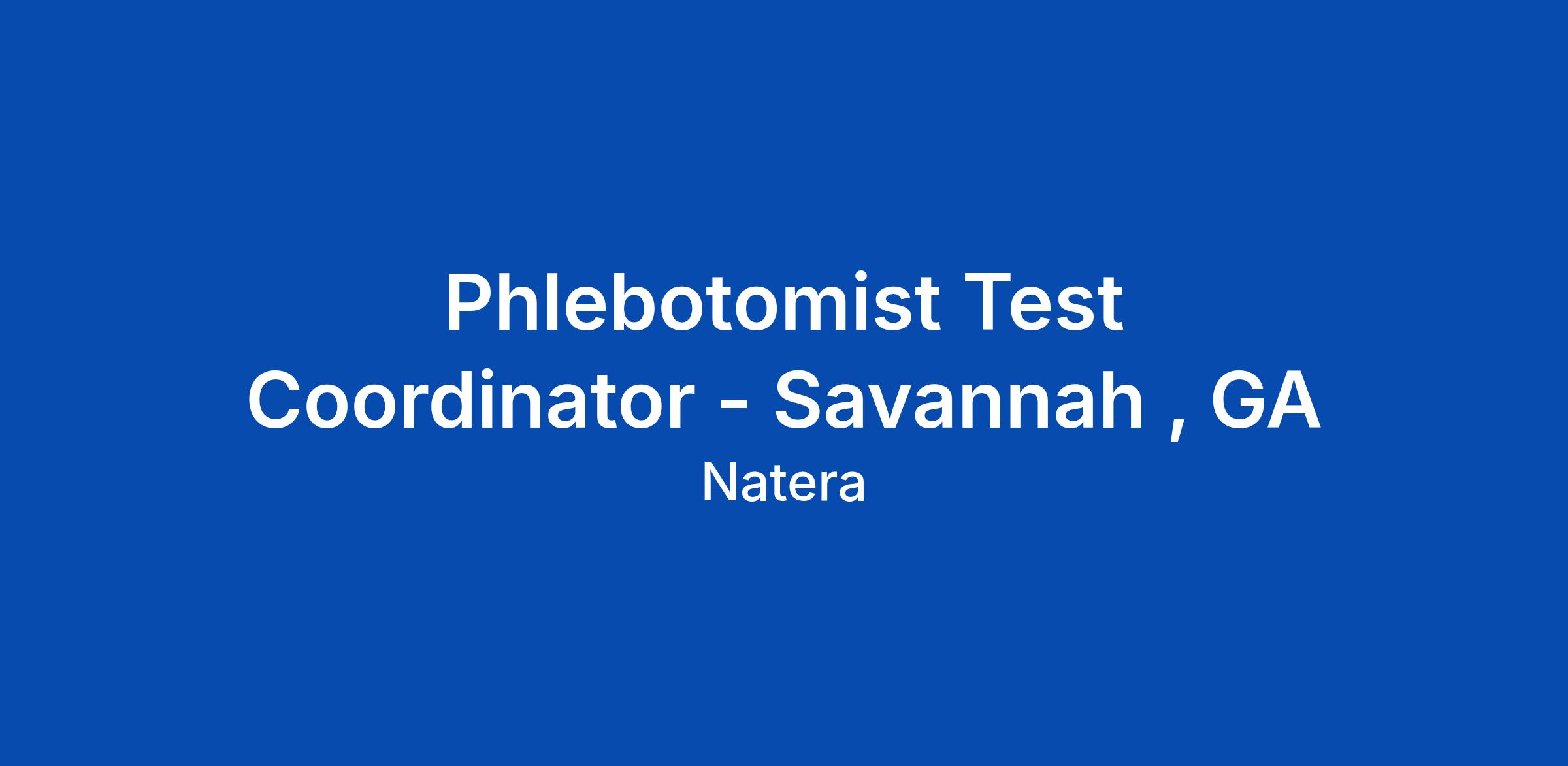 Phlebotomist Test Coordinator - Savannah , GA