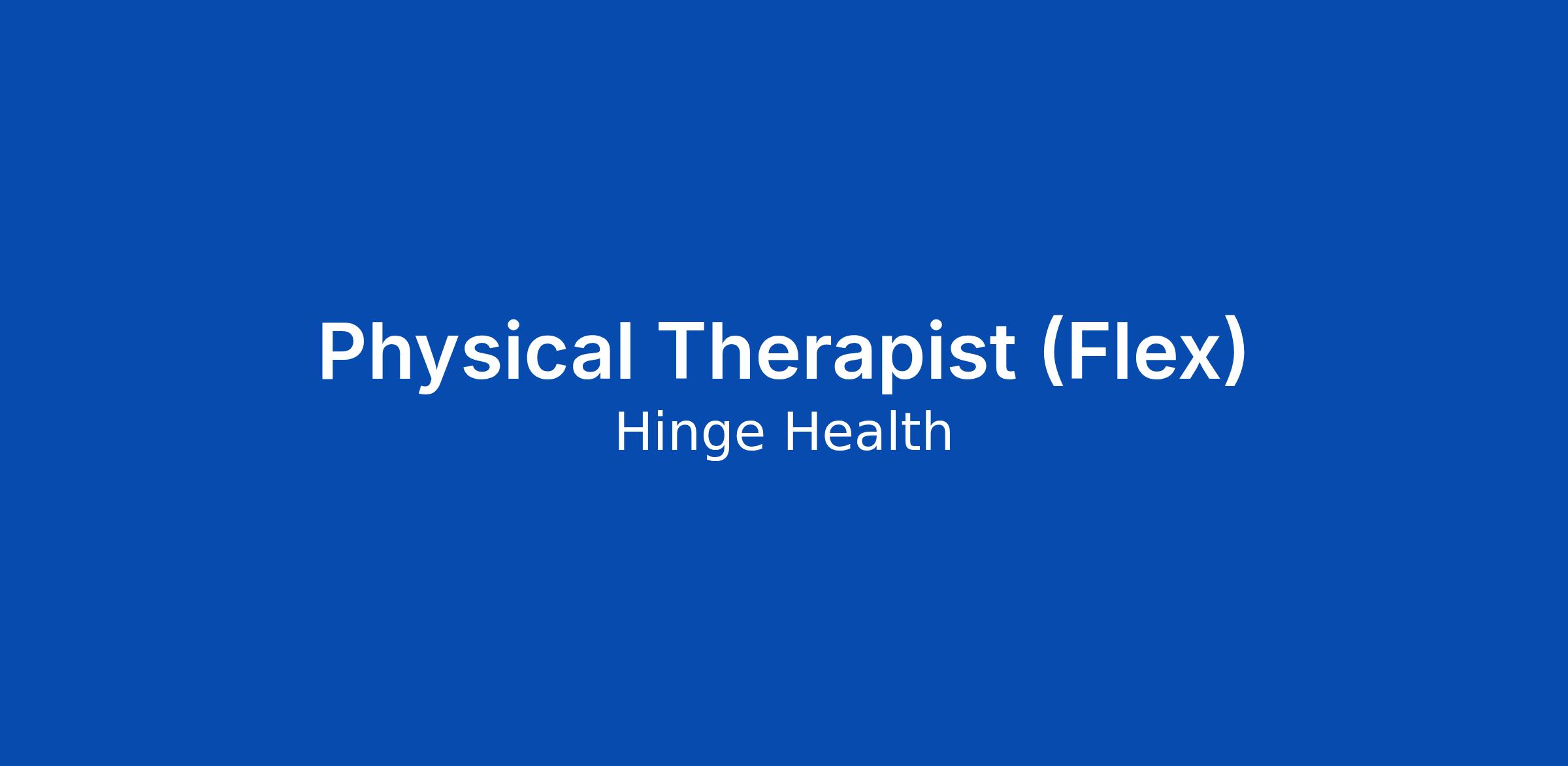 ABOUT THE ROLE Physical therapists are the backbone of the comprehensive clinical care team at Hinge Health. Hinge Health Physical Therapists utilize their clinical expertise and knowledge of pain science to deliver care for a large number of patients across the MSK spectrum, including pelvic health, via telehealth video visits and in-app messaging. We believe in providing the best patient-centered care by applying the Biopsychosocial model, evidence-informed practice, and innovative thinking with technology to help patients reduce pain and achieve meaningful outcomes. Through our technology-first platform, Hinge Health physical therapists improve the lives of many at scale. You will work with a diverse set of members within a team of high performing, inclusive clinicians. Our physical therapists are on the bleeding edge of delivering virtual MSK care enabled by advanced technology. Come join us if youβre excited to evolve alongside the future of PT practice! The role is called βFlex Physical Therapistβ for a reason - your flexibility and resilience is critical! - You thrive in situations requiring you to constantly adapt and evolve. Change is not a scary word to you, and you want
