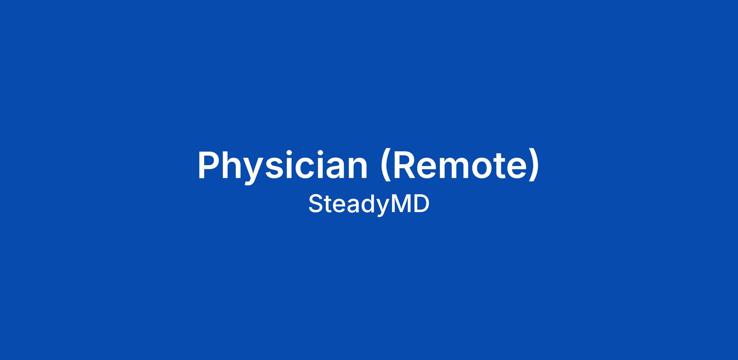 SteadyMD is excited to invite Physicians with licensure in at least two of the following states (CA, FL, TX, NY, TN, GA) for a potential role with our team, and a minimum of 5+ licenses total, to apply for an exciting new program opportunity.